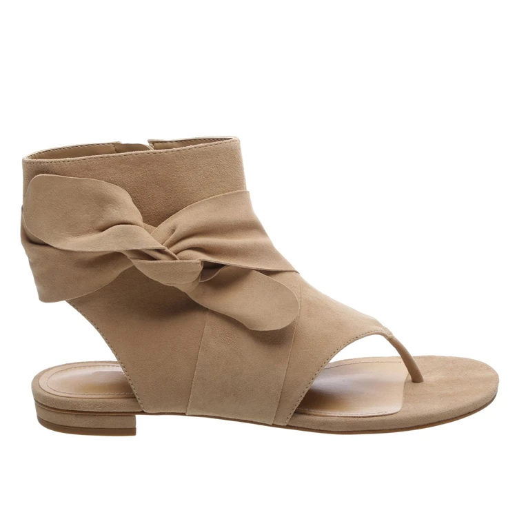 Women Beige Suede Thong Ankle Sandals Bow Accent Elegant Vacation Spring Daily Office Casual Comfort Shoes Wholesale OEM ODM
