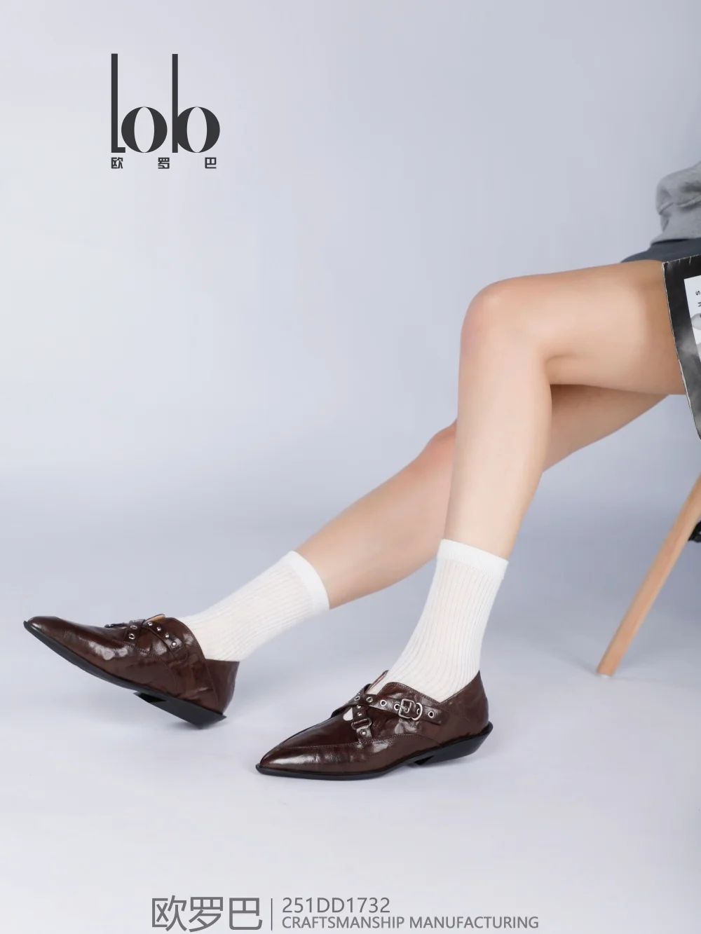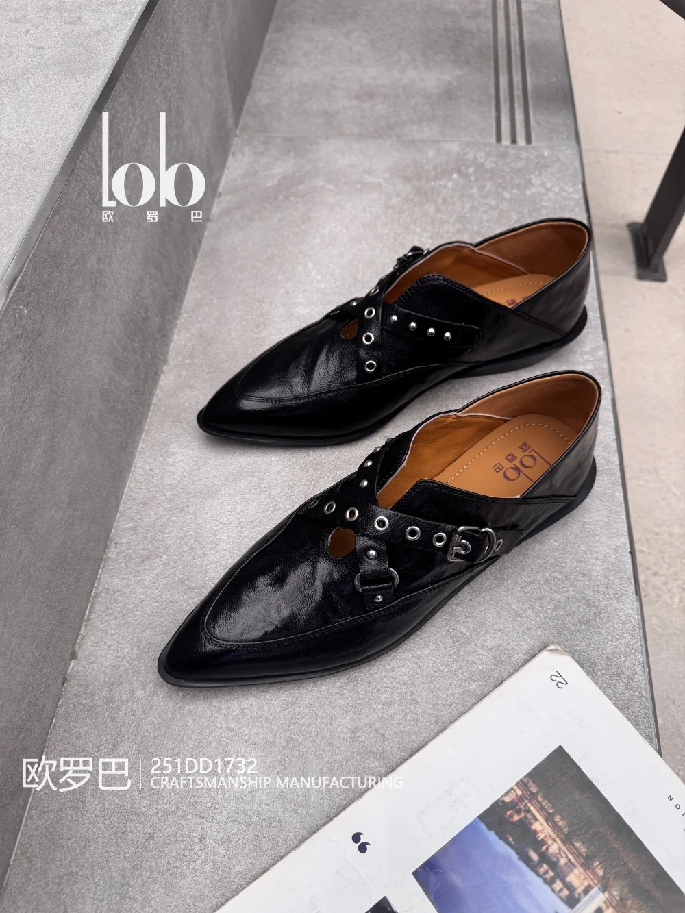 Women's Flat Pointed Toe Cow Leather Buckle Design Western Style Autumn Winter Spring Shoes
