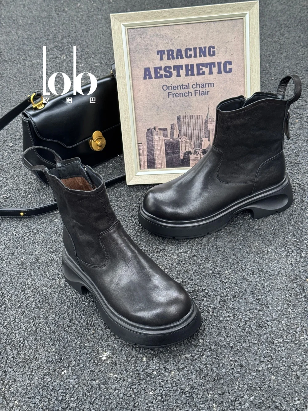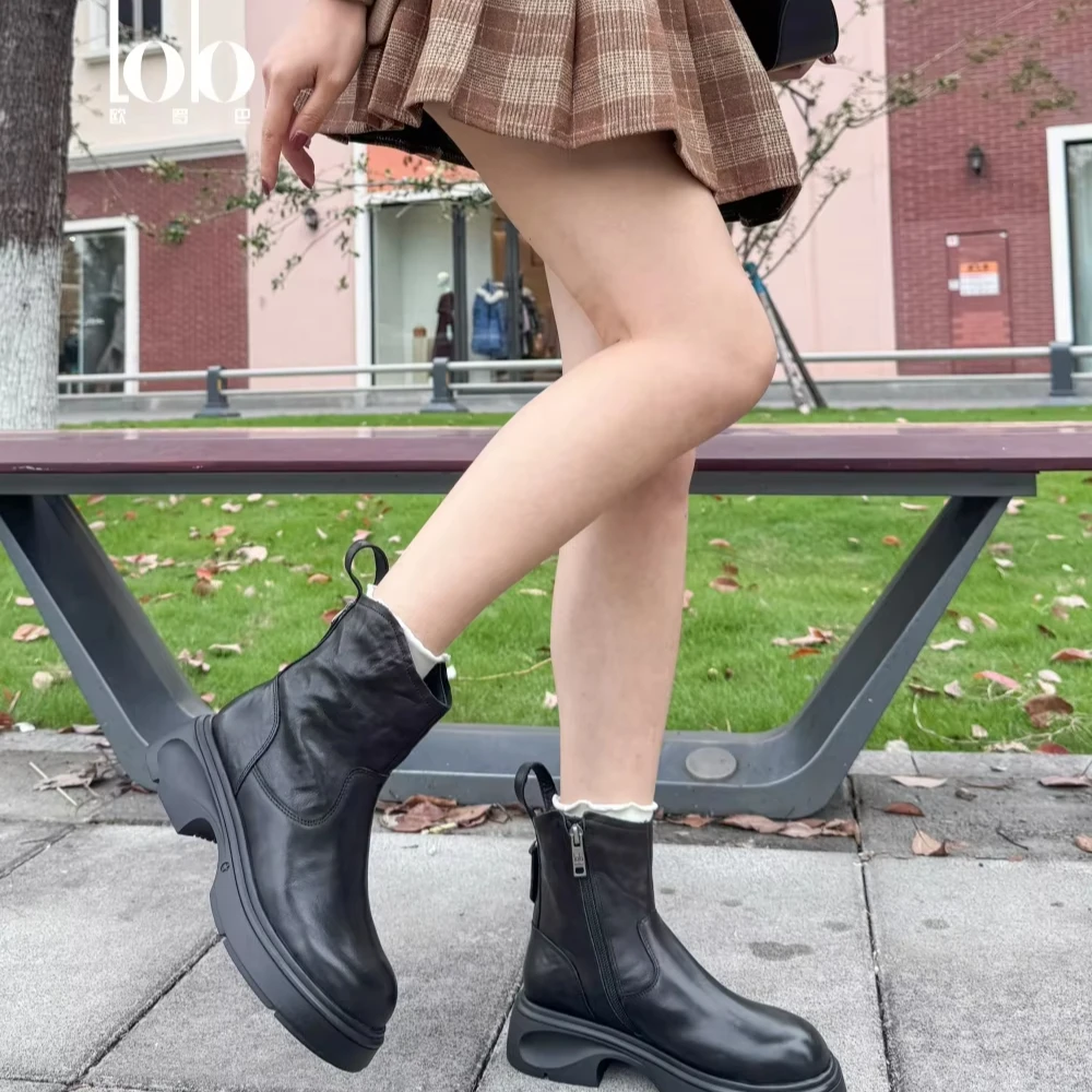 Women's Winter Fashion Chelsea Boots Solid Color Leather Material Side Zipper Breathable Rubber Sole Women's Shoes