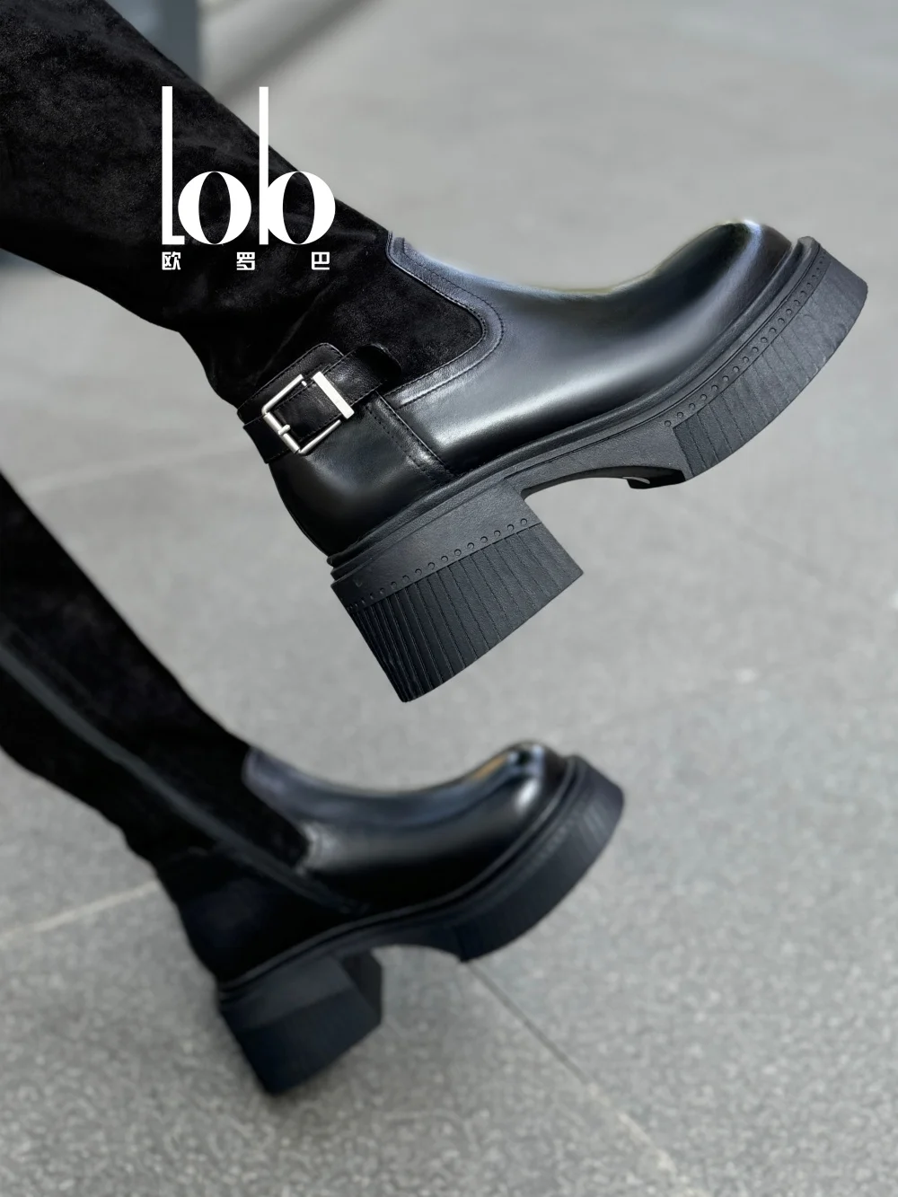 New British Retro Style Ladies Fashion Boots Comfortable Anti slip Side Zipper Thick Heel Thick Bottom Winter Women's Shoes