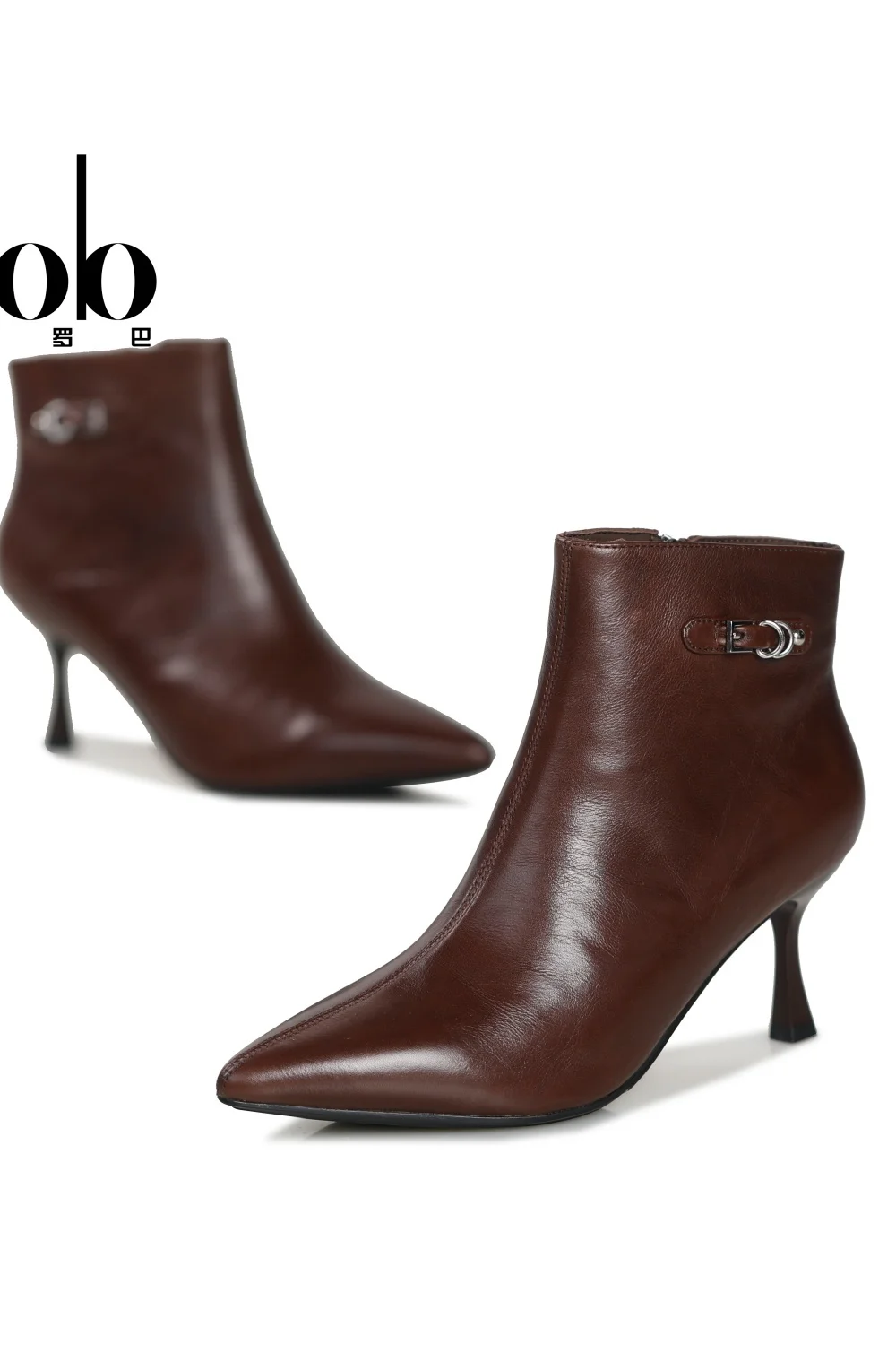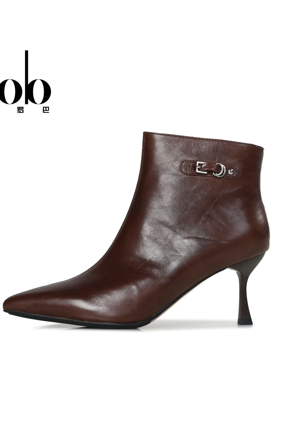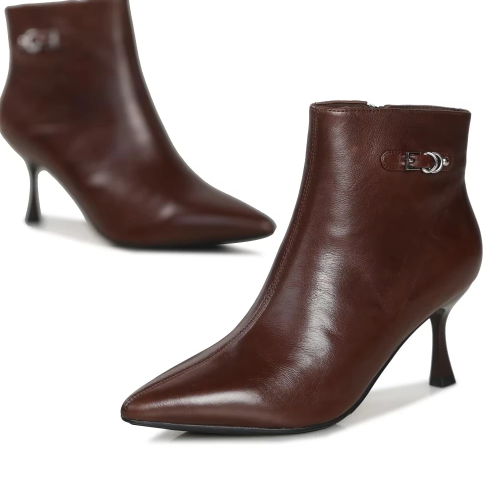 Elegant Women's Ankle Boots Made of Genuine Leather, Pointed High Heels with Buckles, Mid Heeled Fashionable Boots for Women
