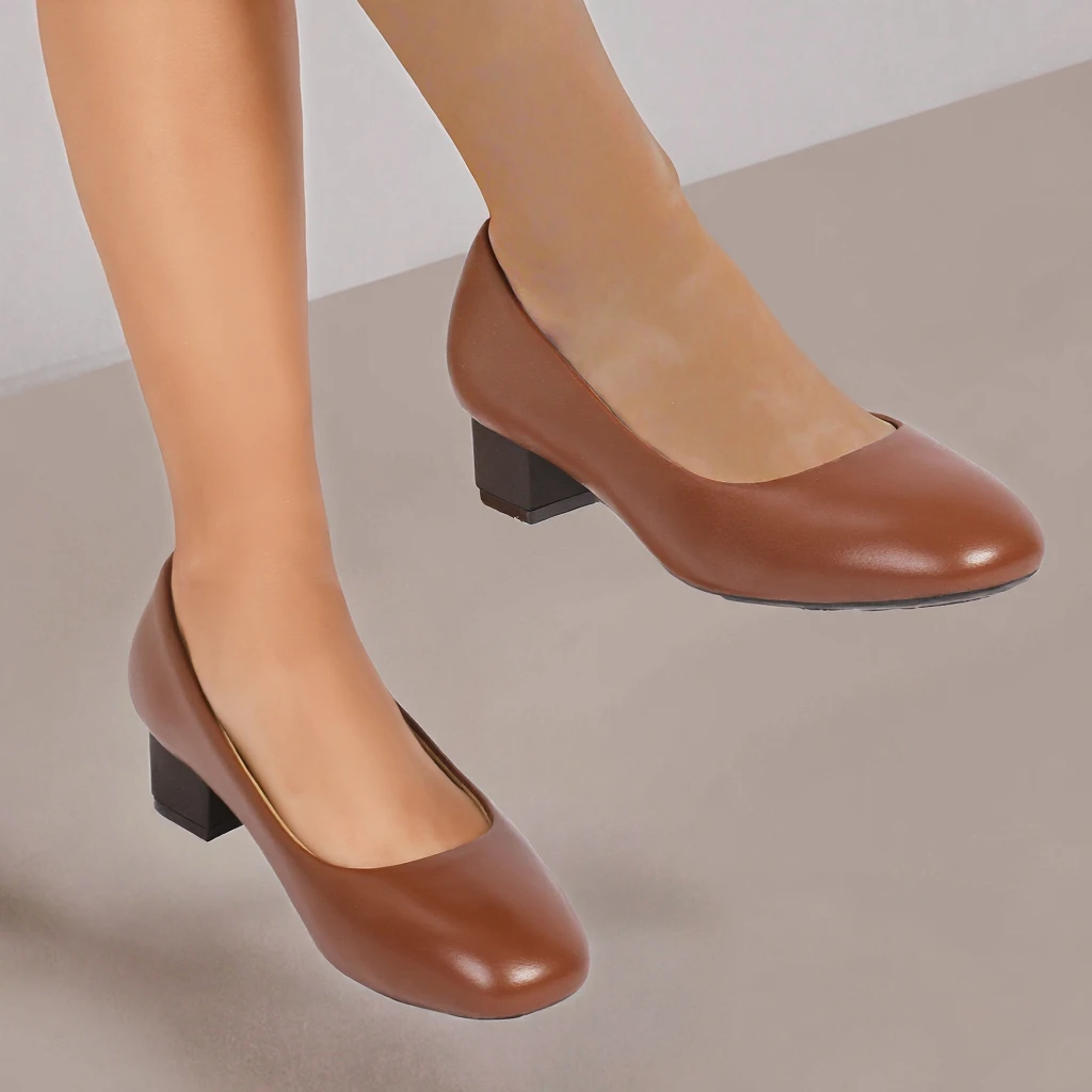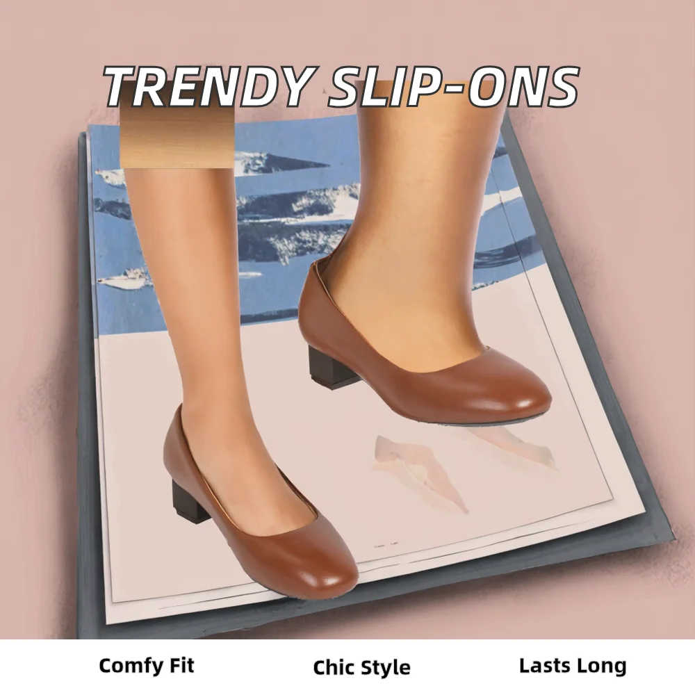 1367-1ZP Trendy Women's Formal Slip-On Shoes Low Square Wedge Heel High Quality Genuine Leather PP Insole Fashion Trend Summer
