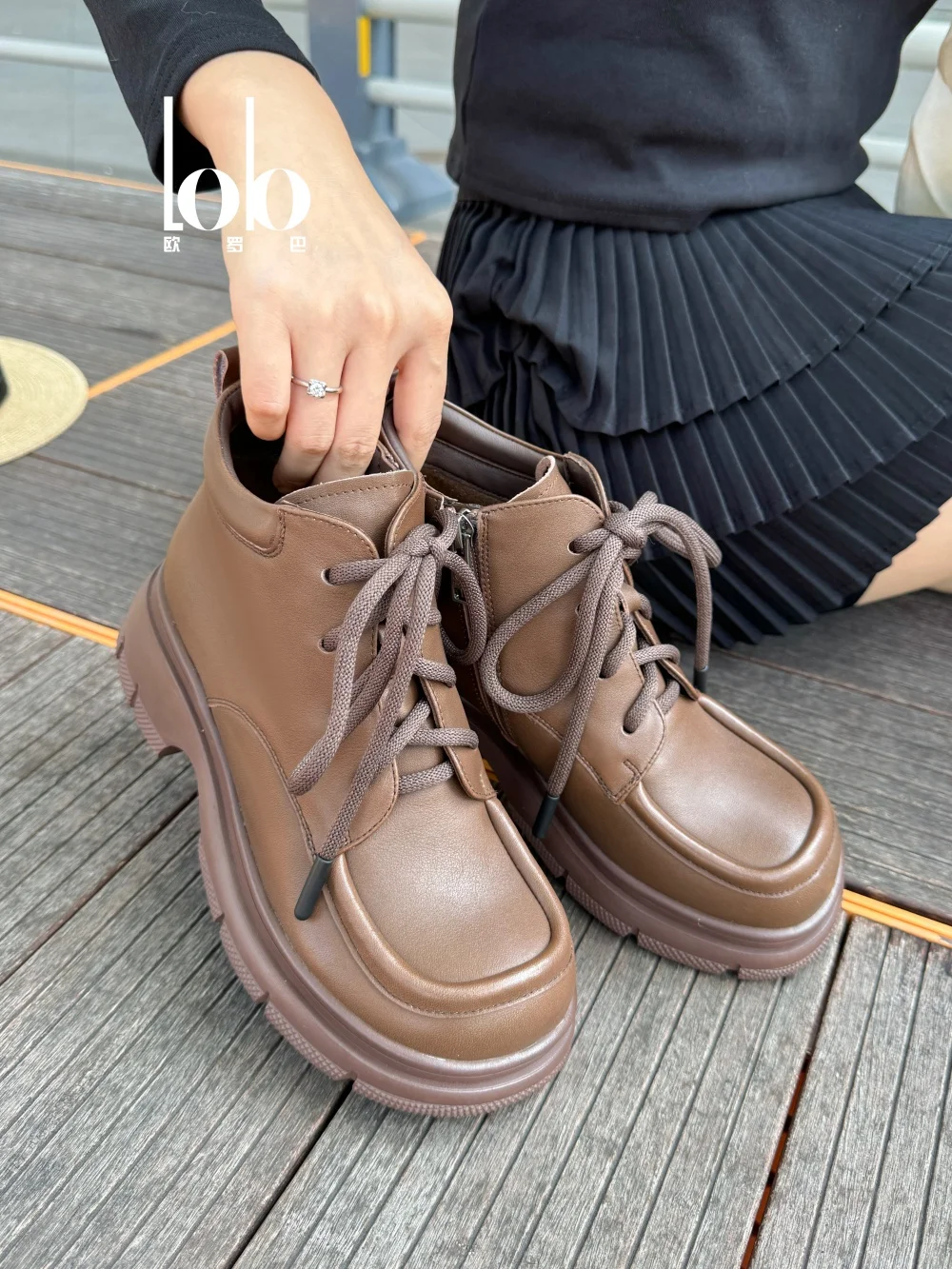 Ladies' Fashionable Leather Roman Boots with Zipper Closure for Autumn and Winter Ankle Height, Popular Women's Shoes
