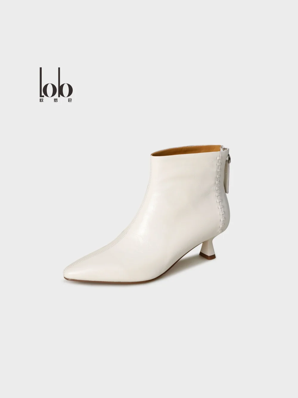 Luxury Women's Classic Fashion Ankle Boots Hand Woven Genuine Leather Pointed Toe Thin Heels Winter Shoes Height Increasing