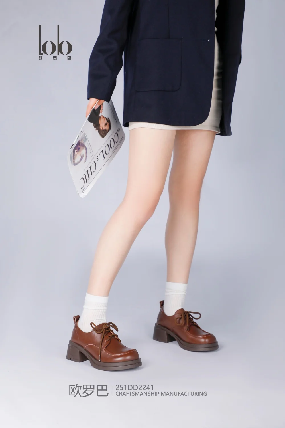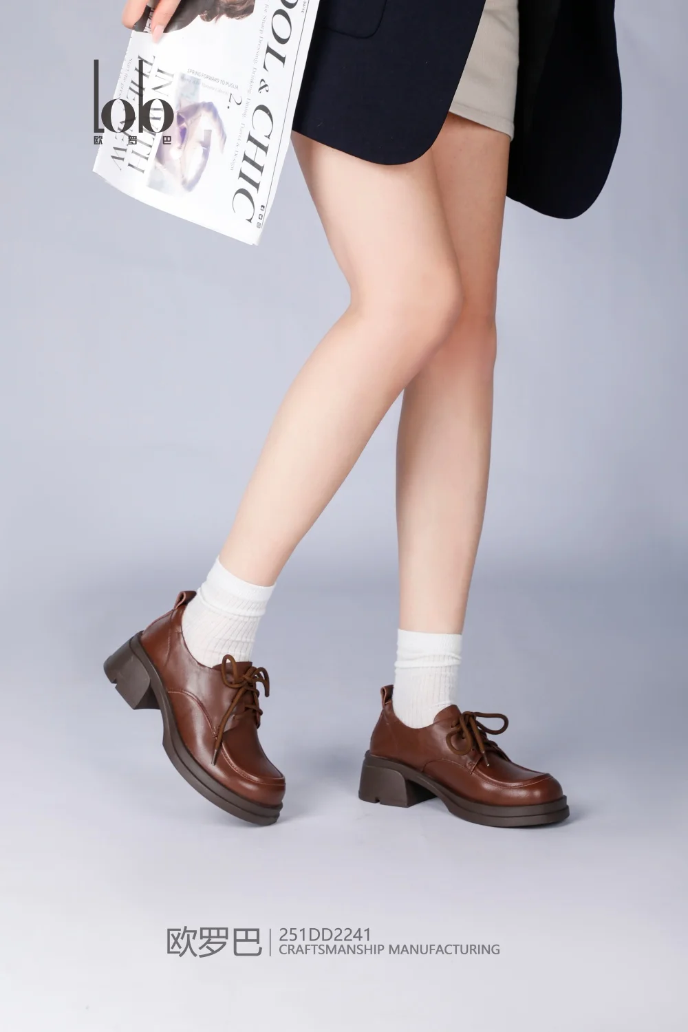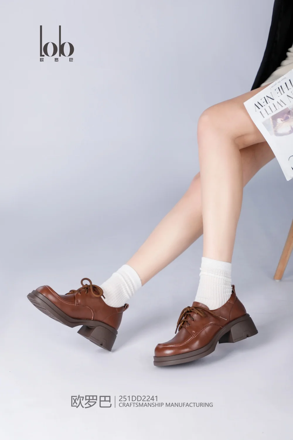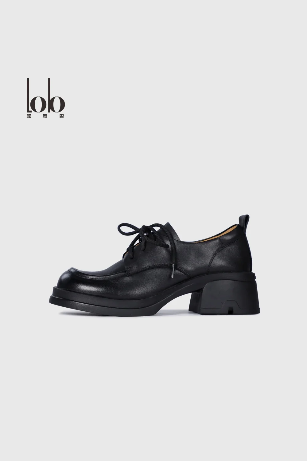Luxury Women's Square Heel Thick-Soled Chunky Shoes Popular Lace-Up Design Genuine Leather Office-Appropriate for All Seasons