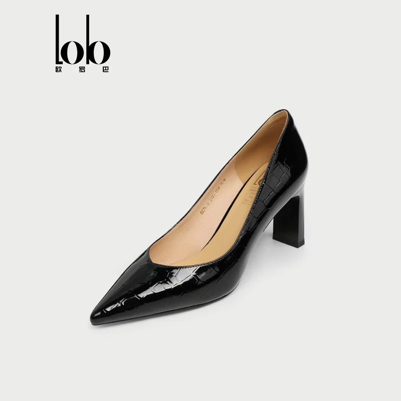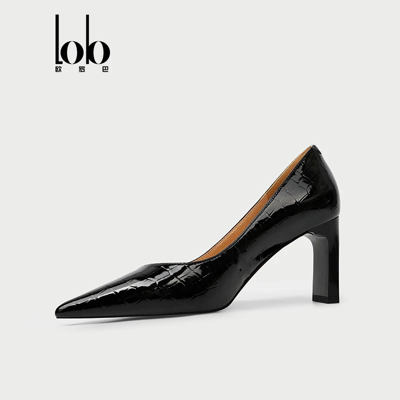 Ladies' High Quality Pointed Toe Cap Square Heel Formal Sexy Slip-On Genuine Leather Shoes Black Breathable Fashion Trend Spring