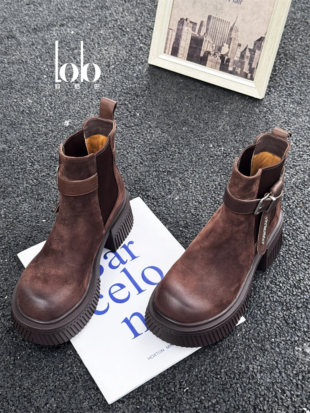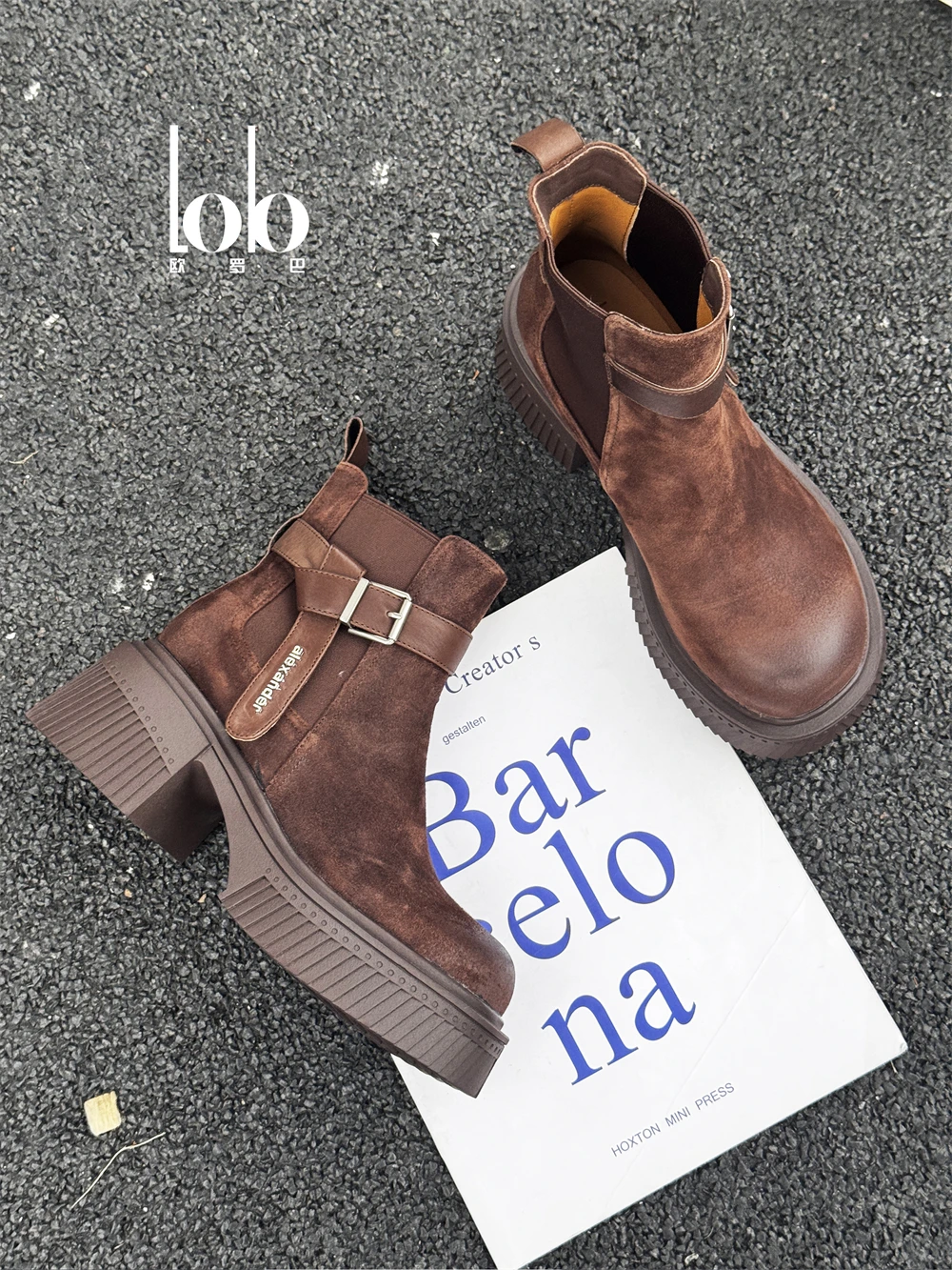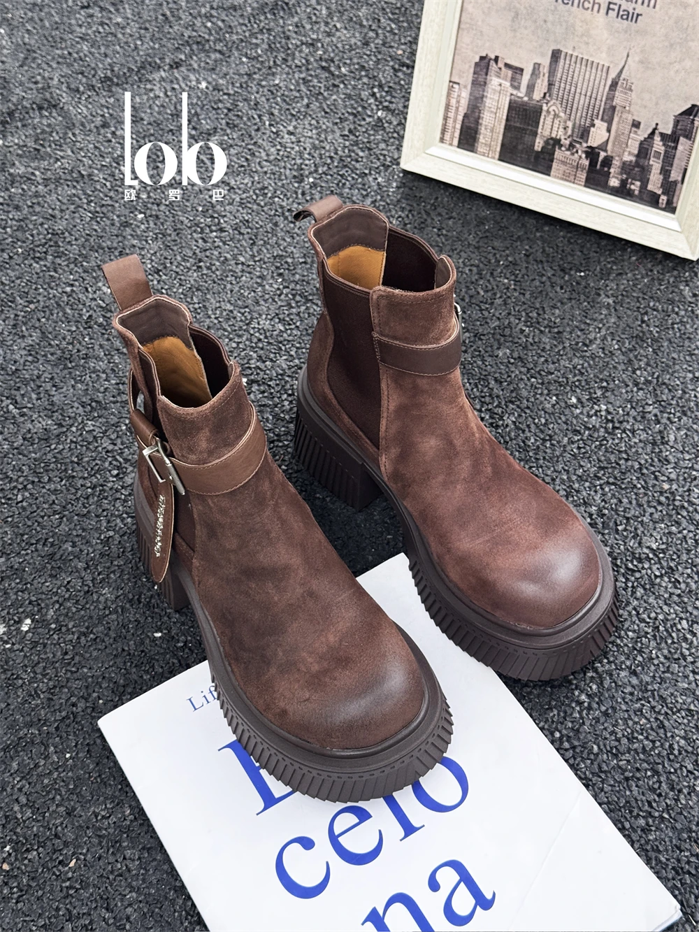 2026 Suede Ankle Boots Children Autumn Winter New Korean Women French Thick Heel ZIP Closure Height Increasing Chic Super Fire