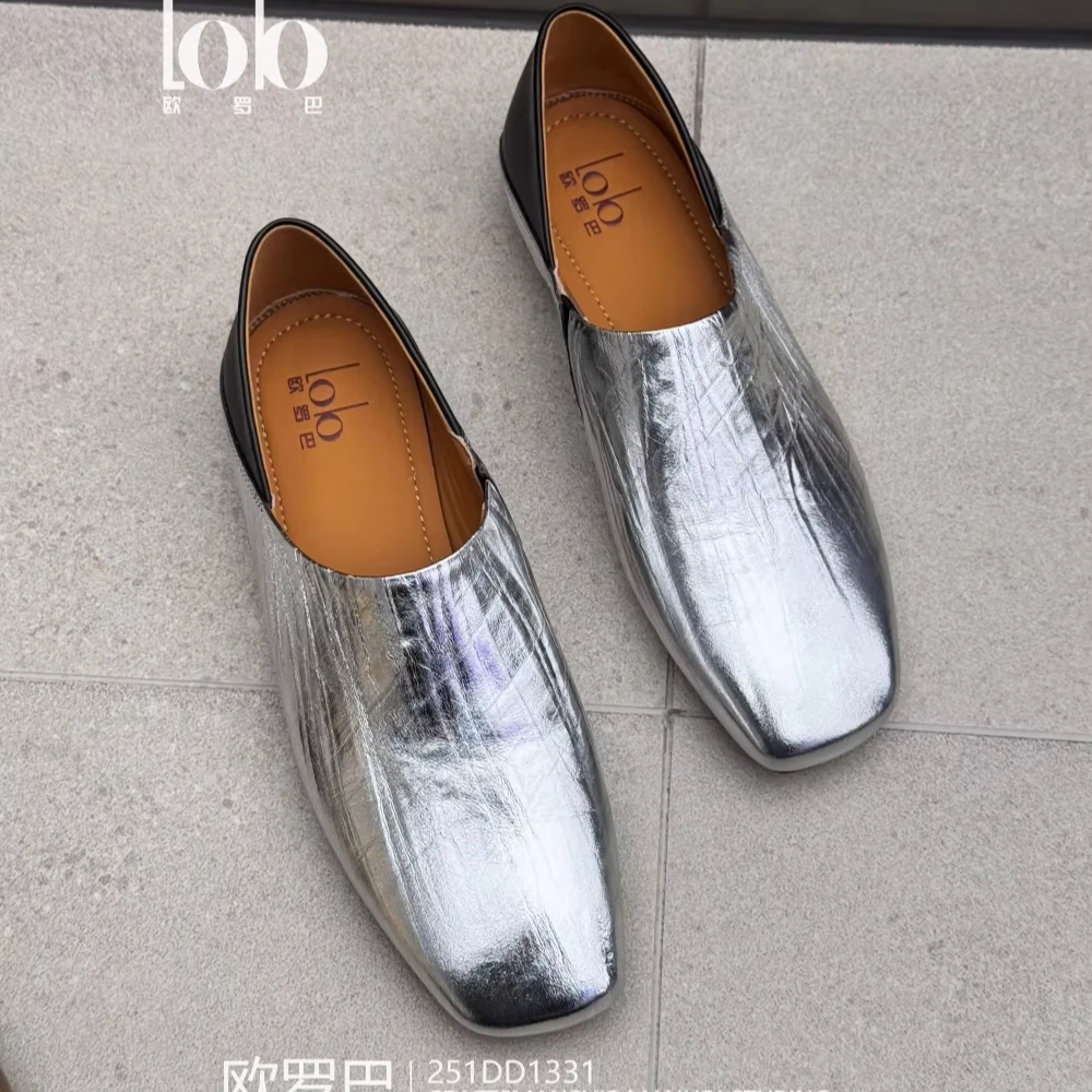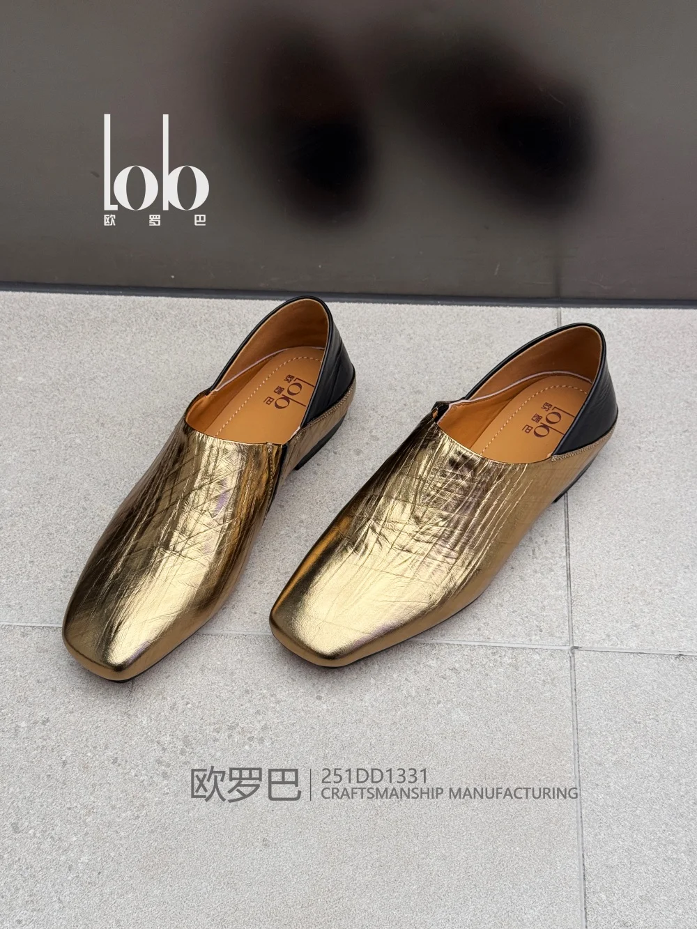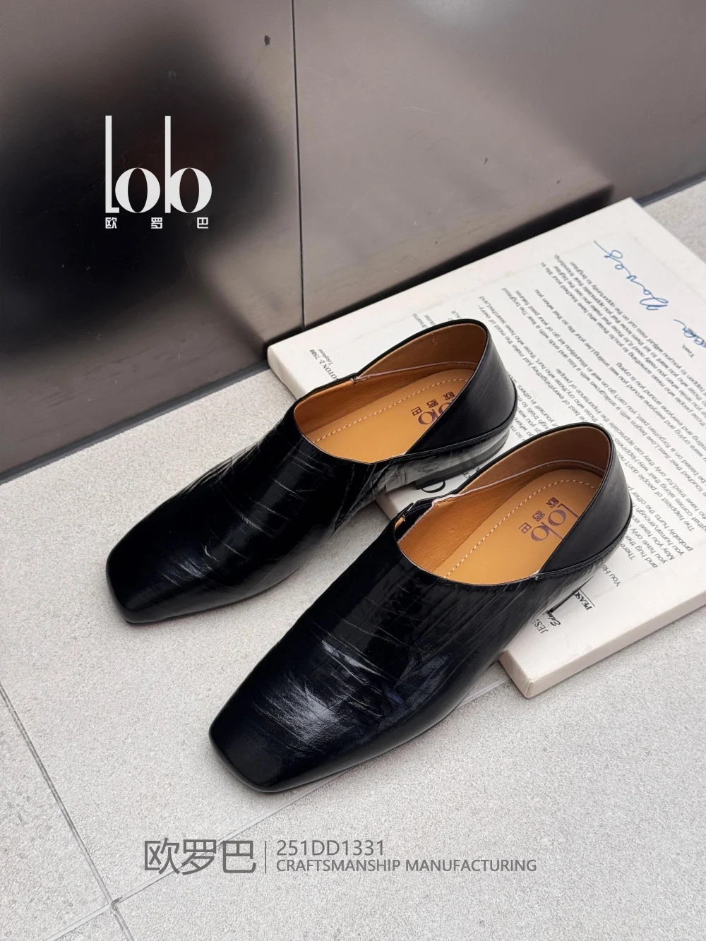 Women's Shoes Comfort Genuine Leather Square Closed Toe Mules Low Heel Slip-On Lightweight Soft Solid Pattern Spring Fashion