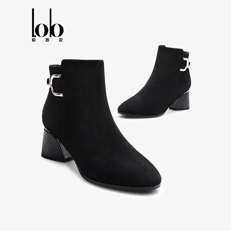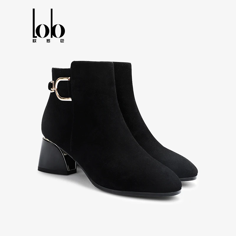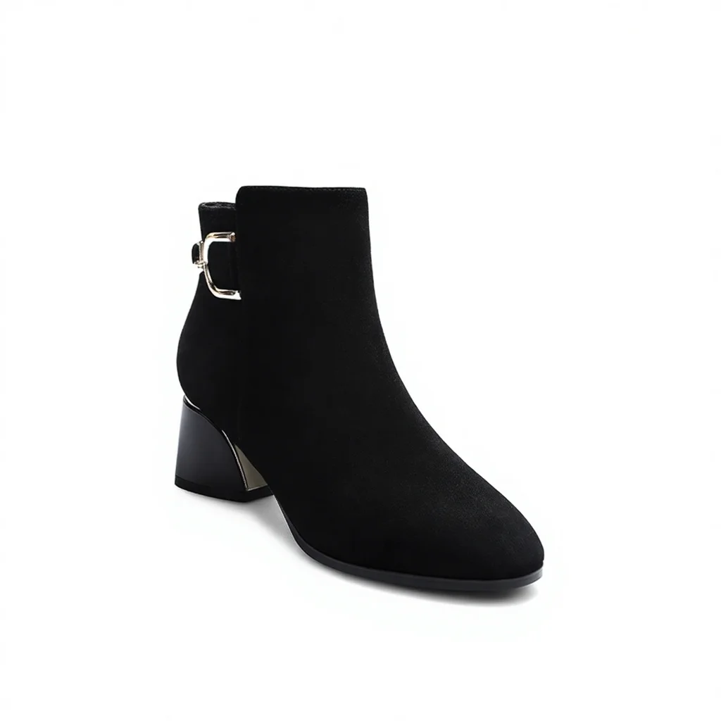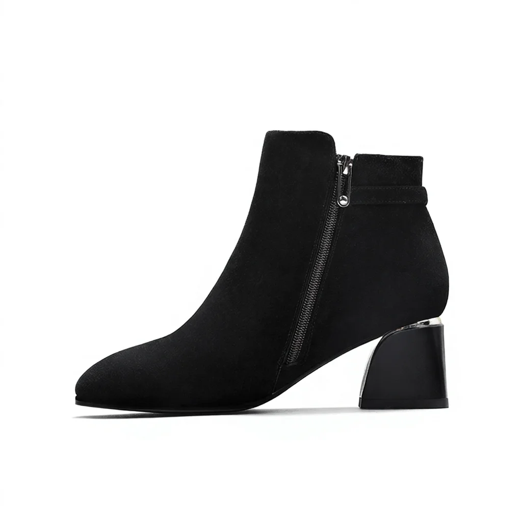 Women's Black Zip Boots Autumn Western Fashion High Heel Chunky Style Retro Work for Winter