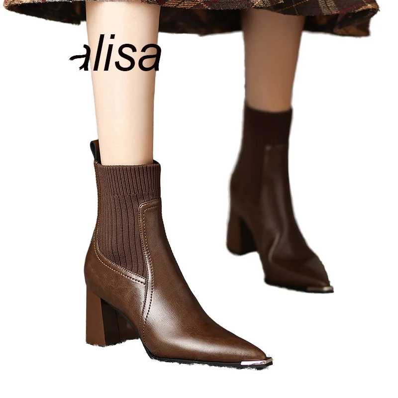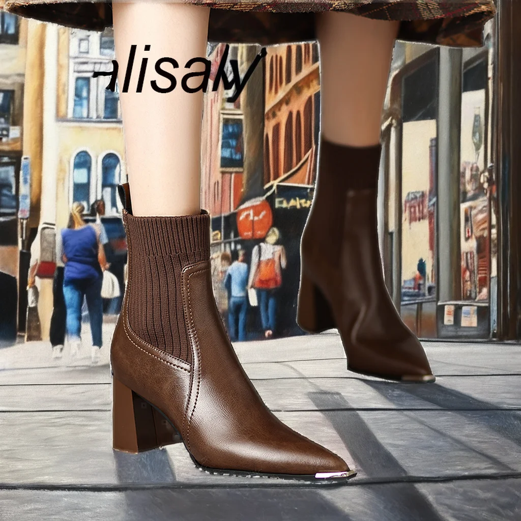 Women's Waterproof Breathable Fashionable Summer Autumn Spring Hard-Wearing PU Upper High Heels with Pointed Toe Trendy Styles