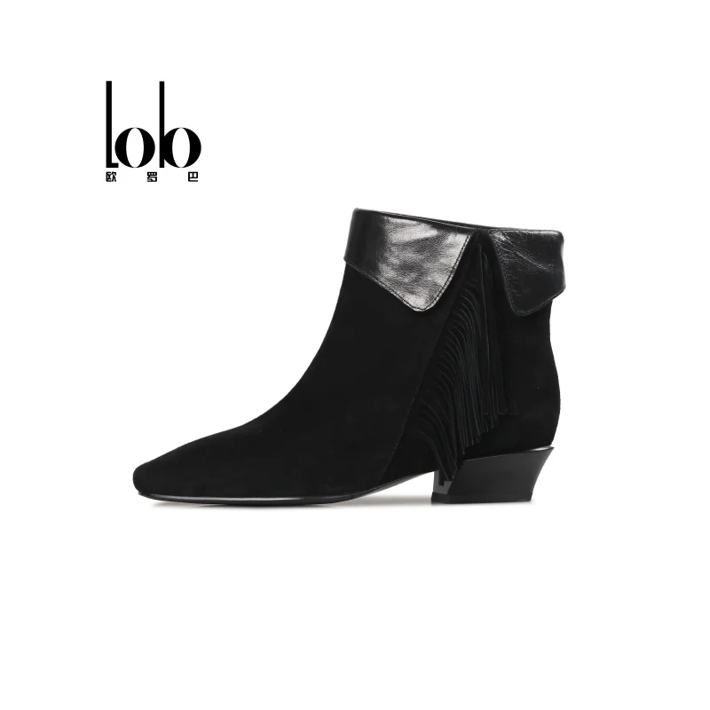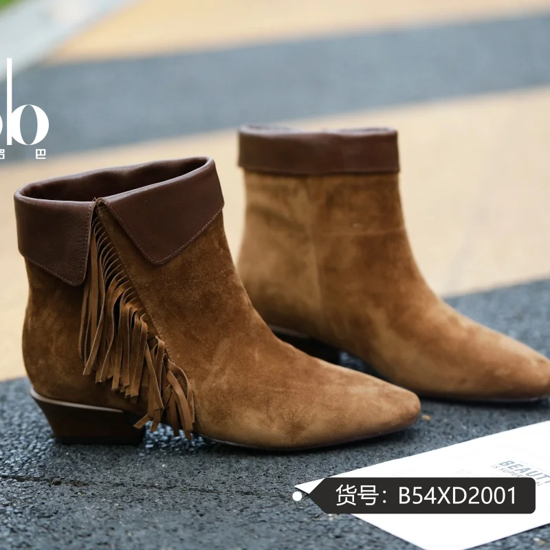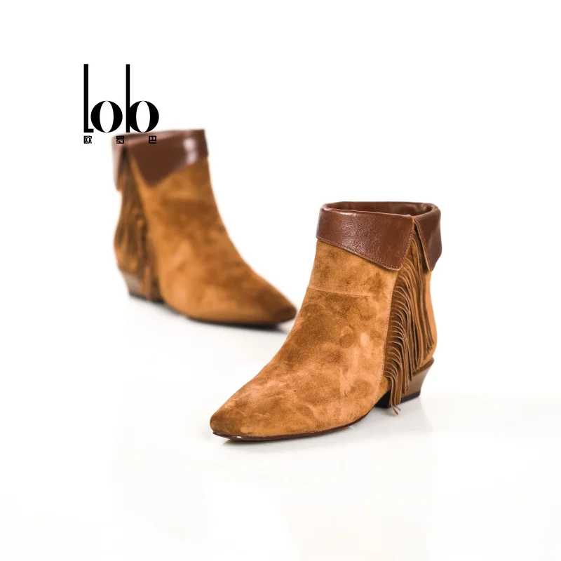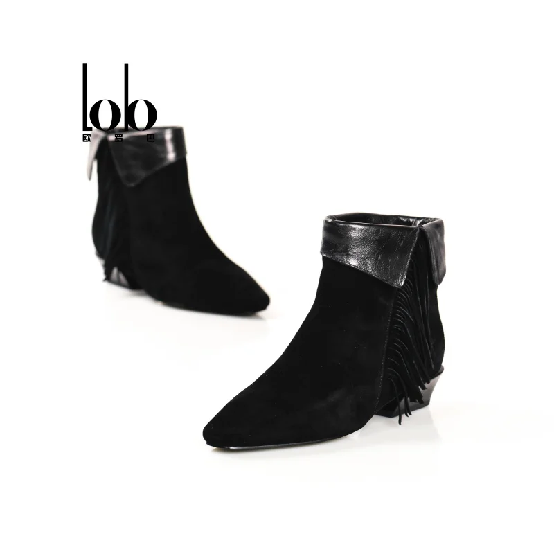 Suede Ankle Riding Boots Pointed Toe Fringe Comfortable Cowboy Style Lightweight Slip Resistant Solid Pattern Slip-On Closure