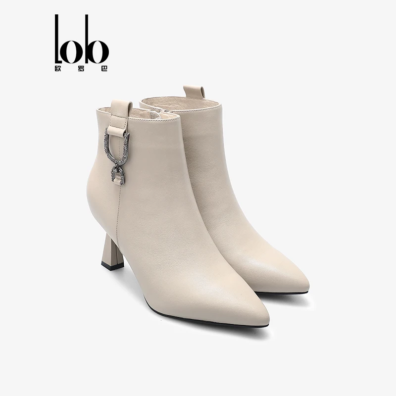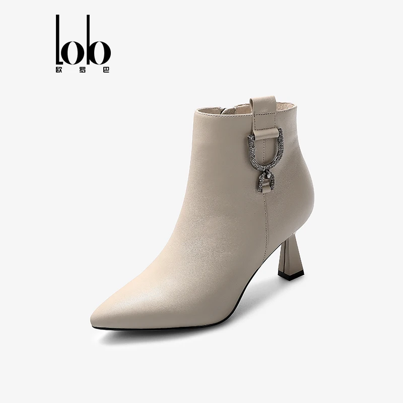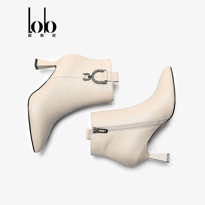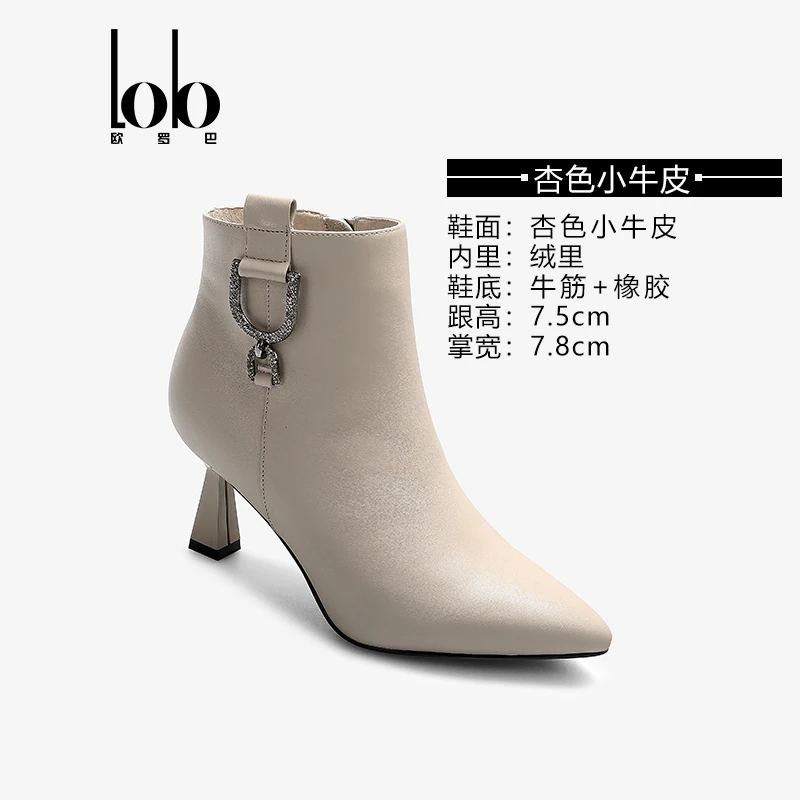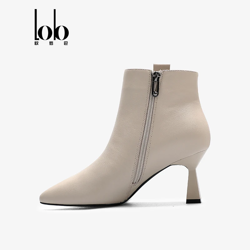 N184 Women's Classic Style Genuine Cow Leather Ankle Boots Thin Heel Pointed Toe Side Zipper Closure Autumn Height Increasing