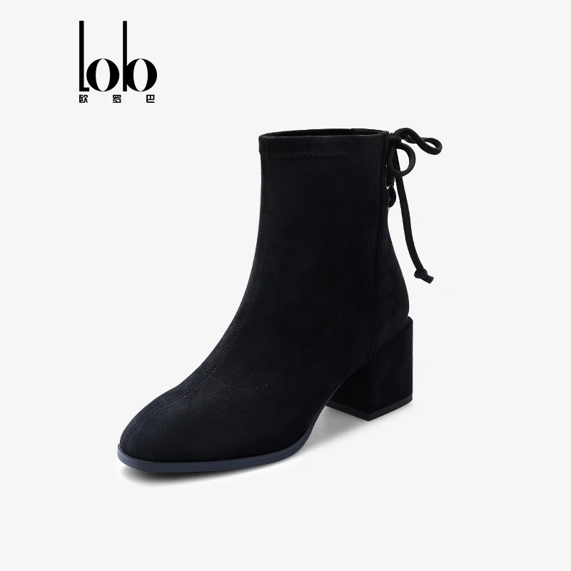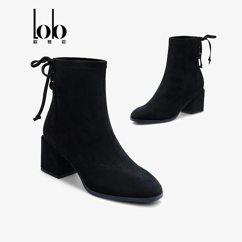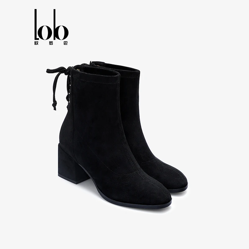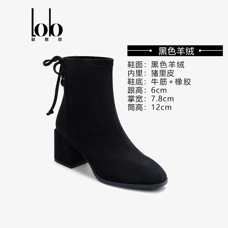 Women's Velvet Upper Elegant Zipper Ankle Boots with Comfortable Square Toe High Heels Height Increasing for Autumn/Winter