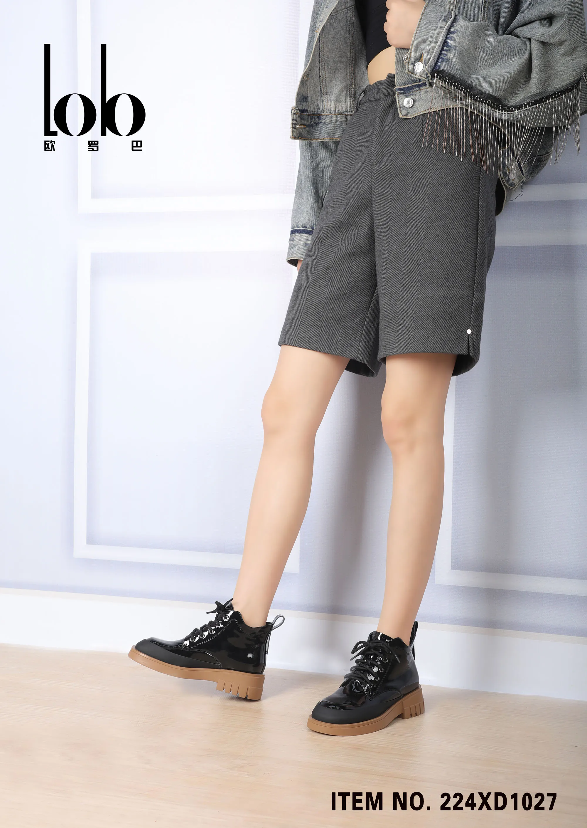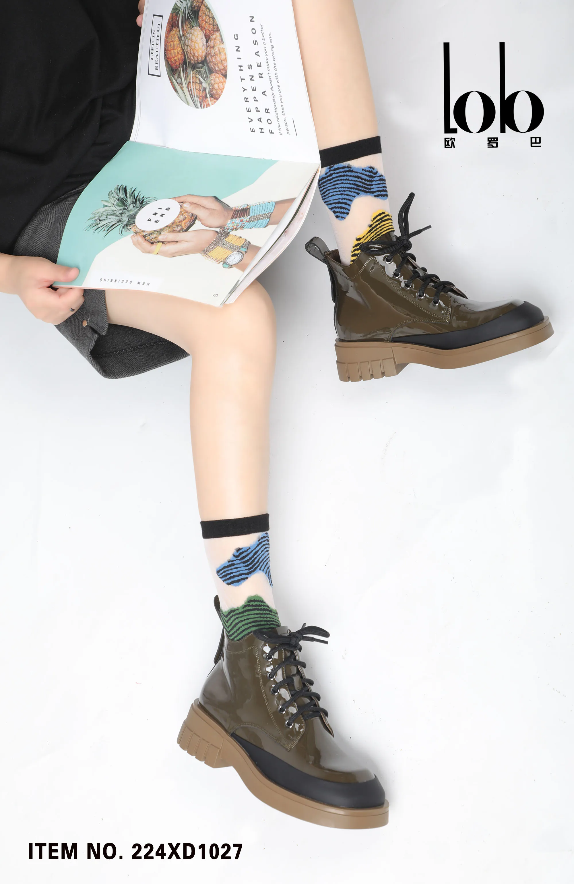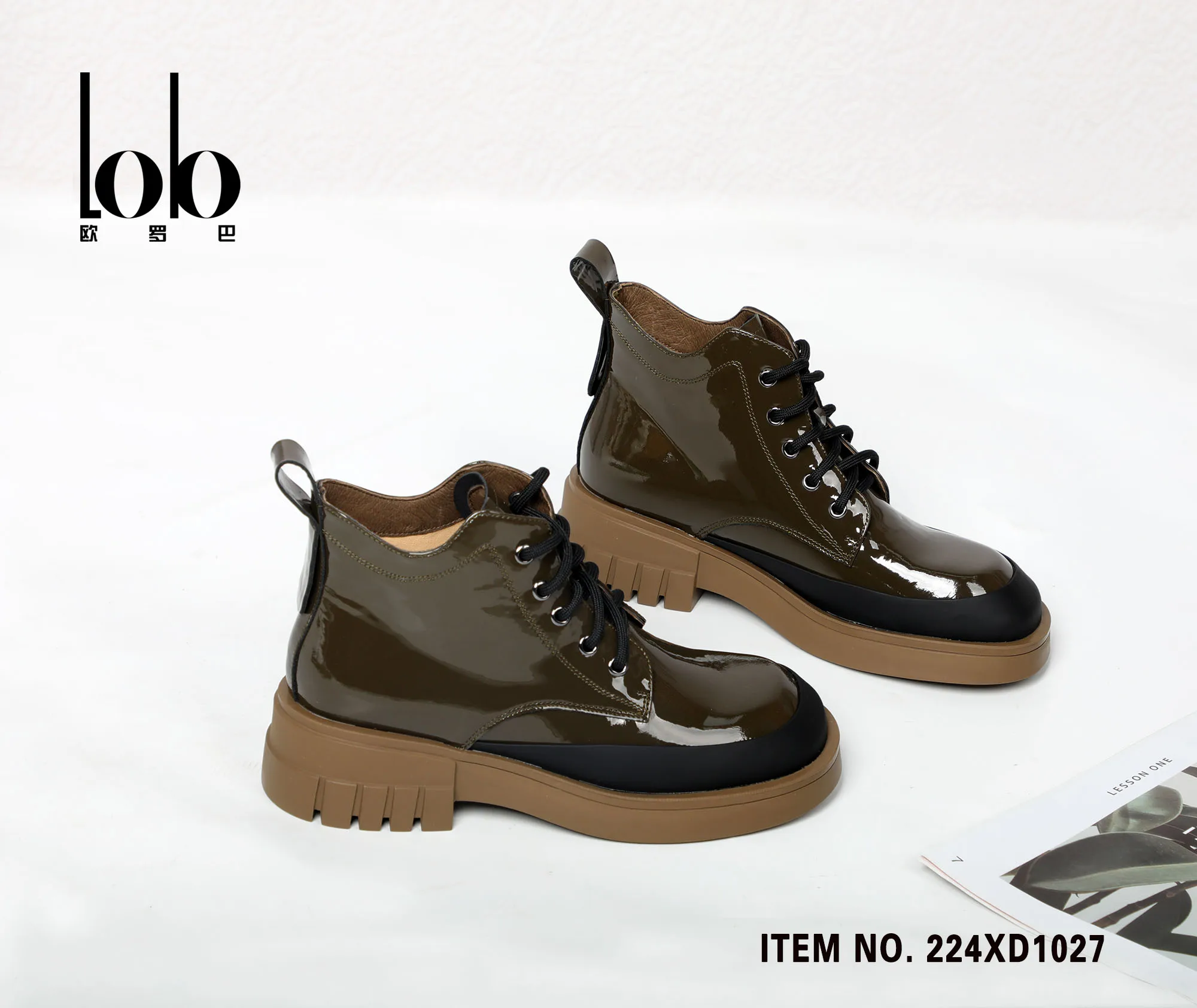 Women's Autumn Winter Genuine Leather Platform Booties Lace-Up Ankle High Thin Heel Fashion Light Thermal Comfortable Solid