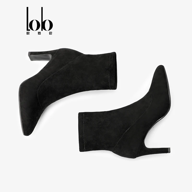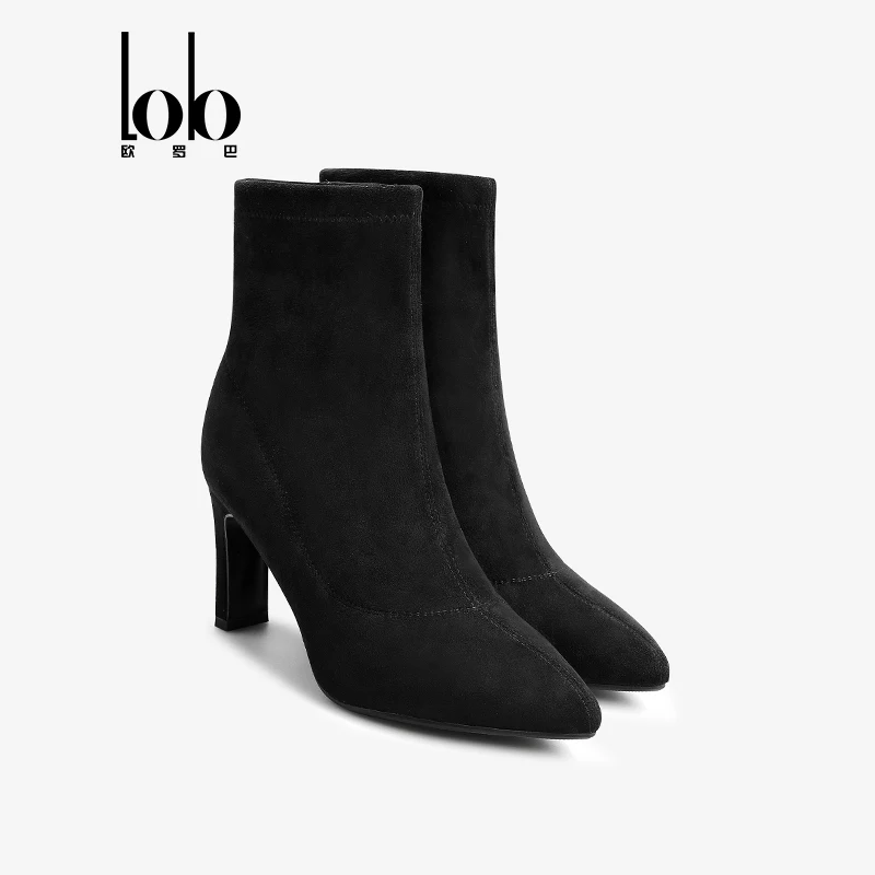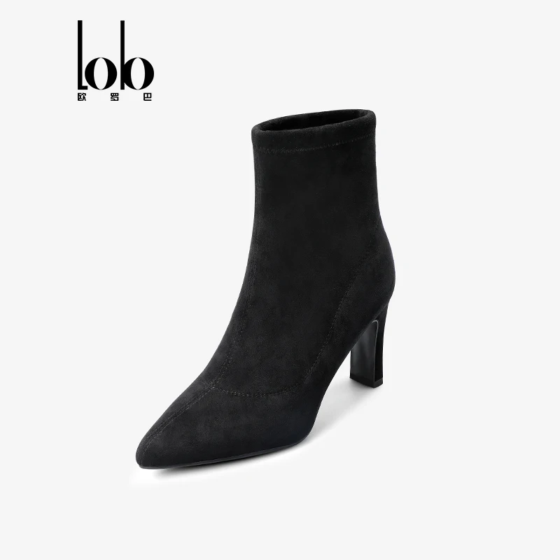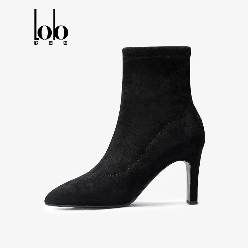 Genuine Leather Autumn Summer Winter Legging Boots Waterproof Stretch Velvet Sock 8cm Block Heel Lining Ankle Bootie Zip Height