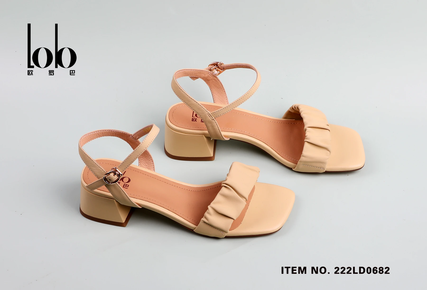 Summer Thick Heel Square Toe Women's Shoes Button Closure Height Increasing 2026 Pleated European American Mid-heel Sandals