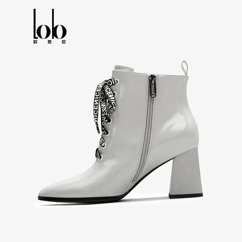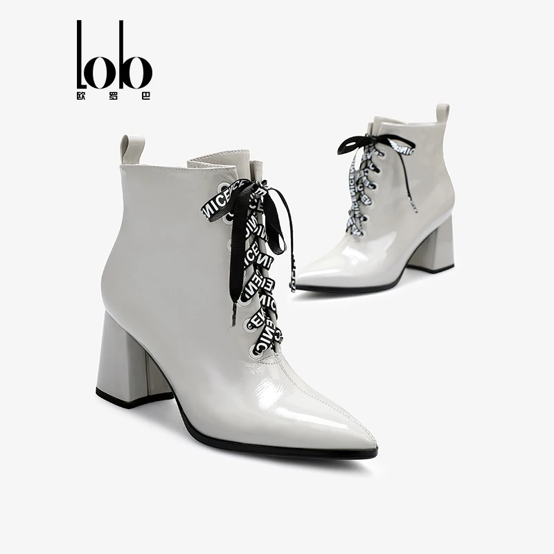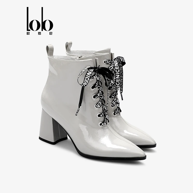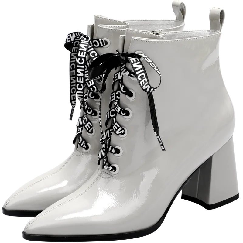 Factory Customization Breathable Leather Ankle Boots Women Lace-Up Closure Pointed Toe Design Chunky Heel Height Increasing