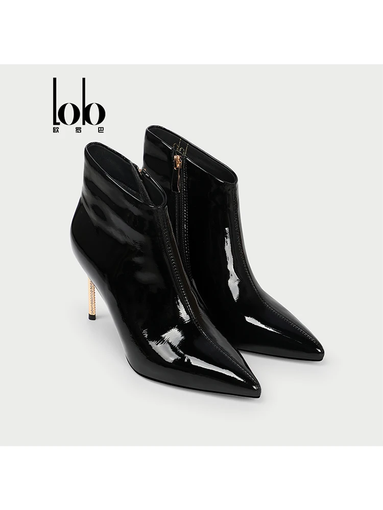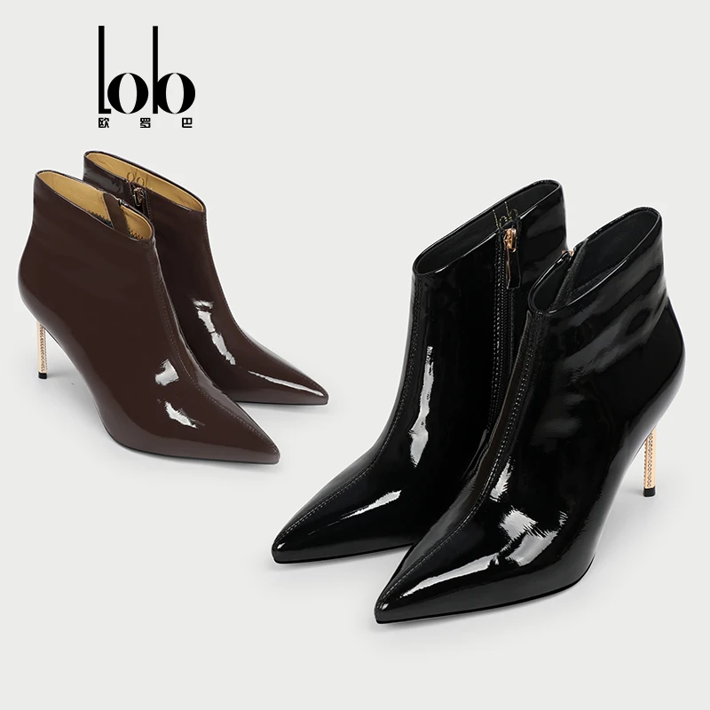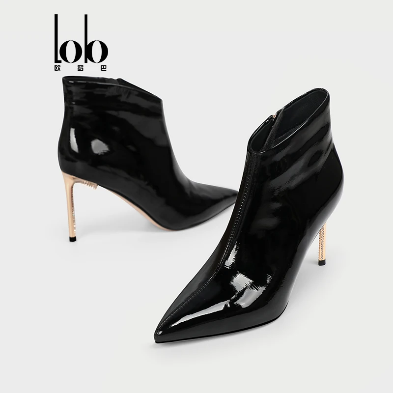 Autumn Female Ankle Boots Pointed Toe Breathable Genuine Leather Stylish Oxford Black Winter Design High Zip Height Increasing