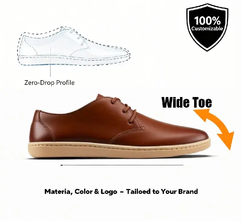 Custom logo zero Drop Wide Toebox Walking Barefoot Shoes Men Women Leather Casual Sneaker