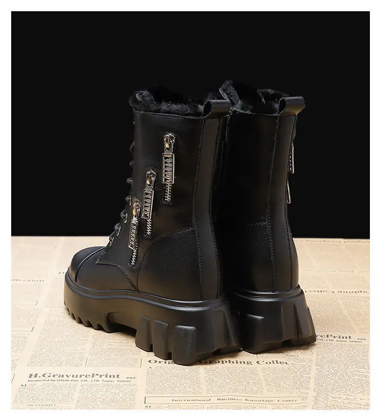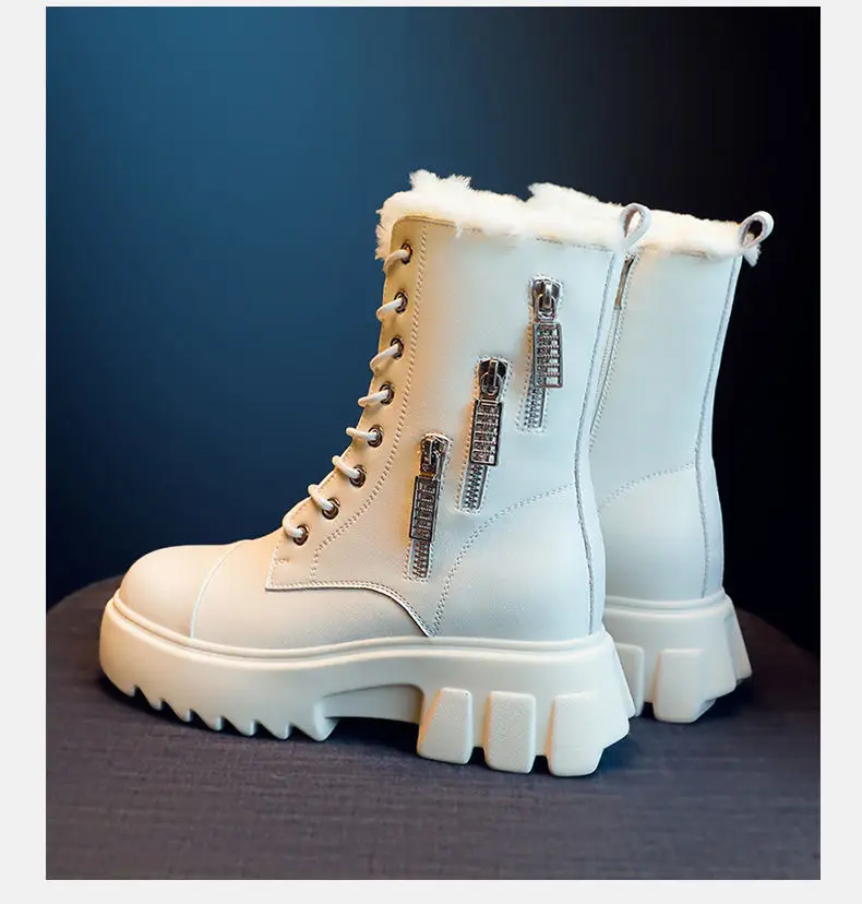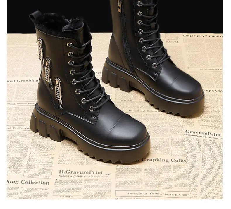 Warm Ladies Cotton Snow Boots Women Genuine Leather Winter Shoes New 2021 Fashion Women Thick Heels Platform Boot PU Knee-high