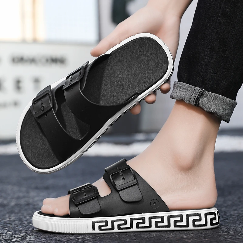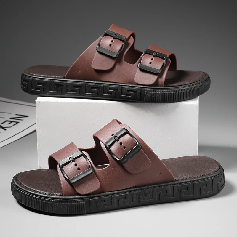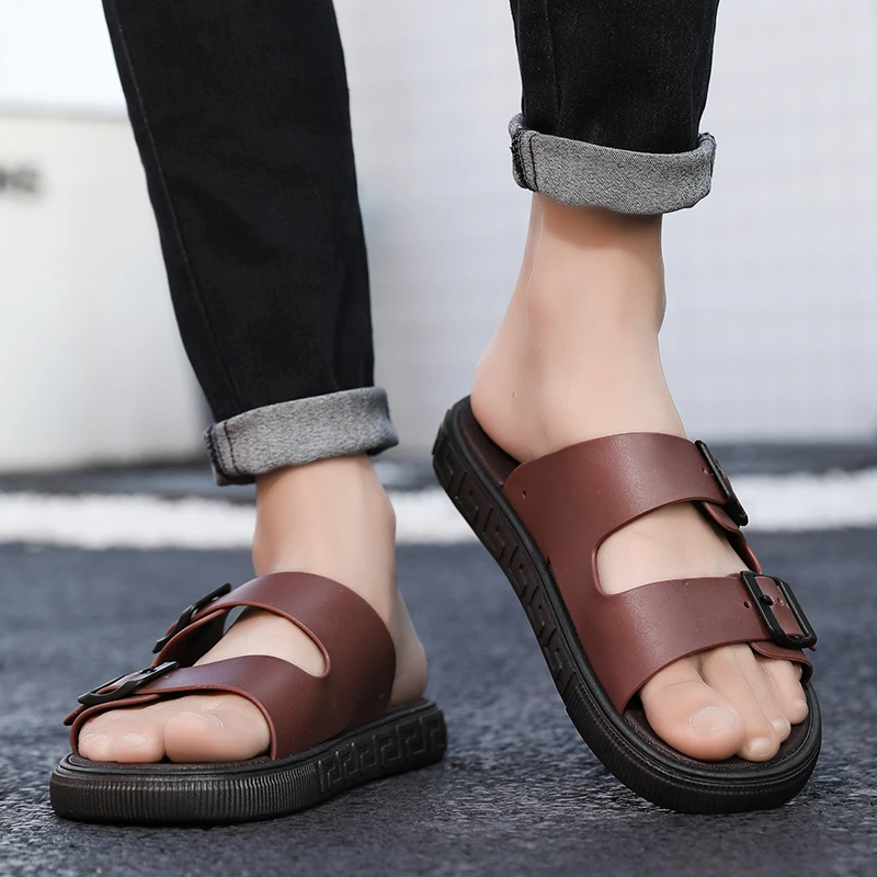 Wholesale Custom Man Black Suede Sandal Shoes Mens Beach Fashion Casual Outdoor Leather Slides Slipper Sandals for Men