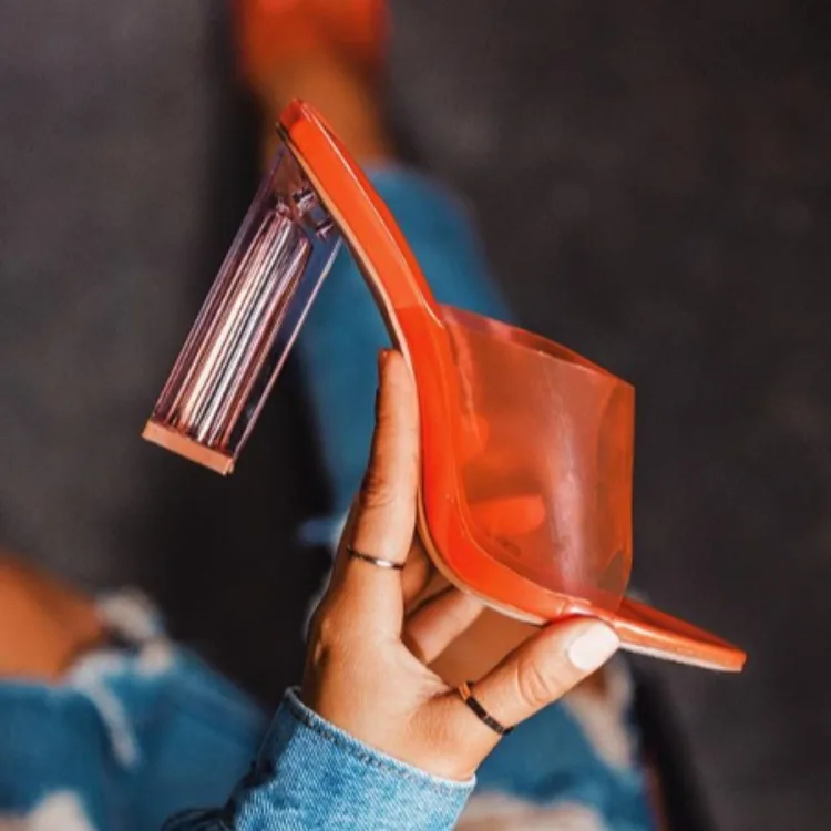 Ins Style Heels 2022 Ladies Party Dress Shoes Plus Size Women clear Jelly Shoes Heeled Sandals