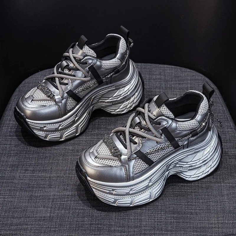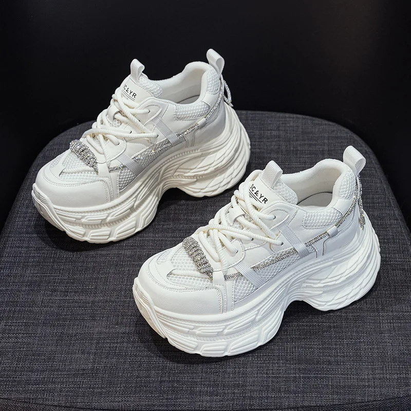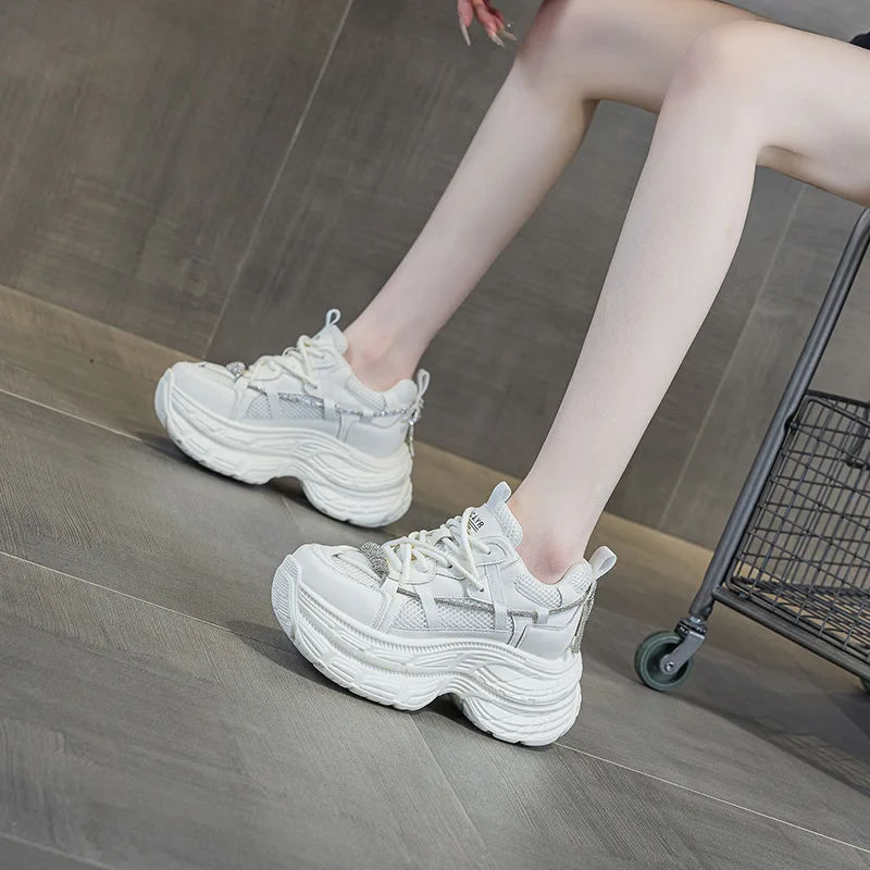 High Quality Women's Thick Soled Height Increasing 9CM2026 Spring New Casual Fashion Sports Board Diamond bar Small Women'sshoes