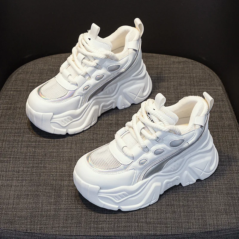 High Quality Thick Soled Women's Shoes with a Height Increase of 8CM, Spring and Summer Mesh Casual and Fashionable Sports Shoes