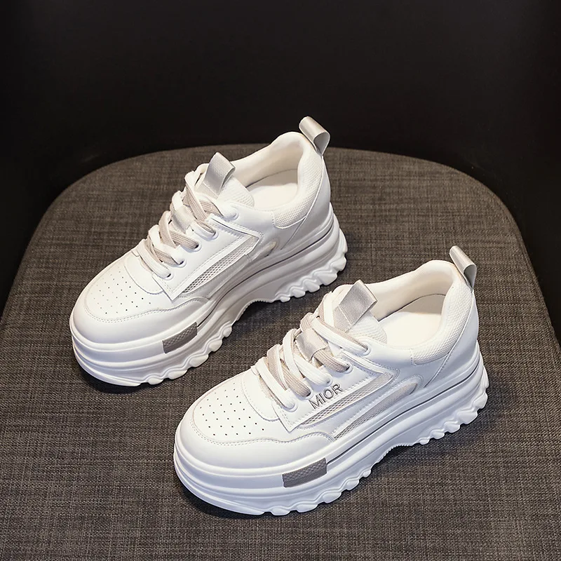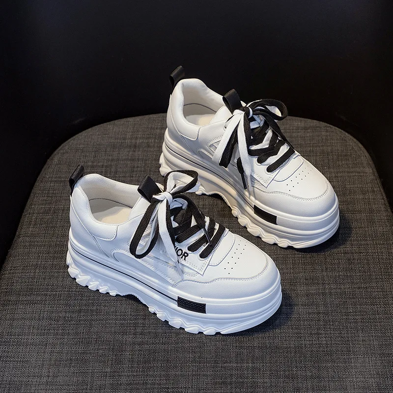 High Quality Thick Soled Leather Shoes for Women, 2026 New Casual Breathable Sponge Cake Shoes, White Shoes