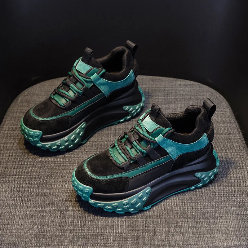 Matte Leather 2026 Spring New Women's Thick Soled Height Increasing Sports Shoes, Casual and Fashionable Women's Shoes
