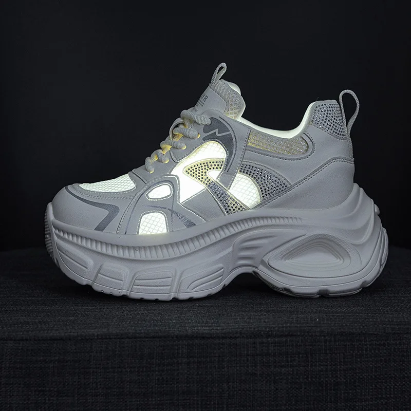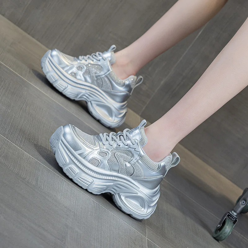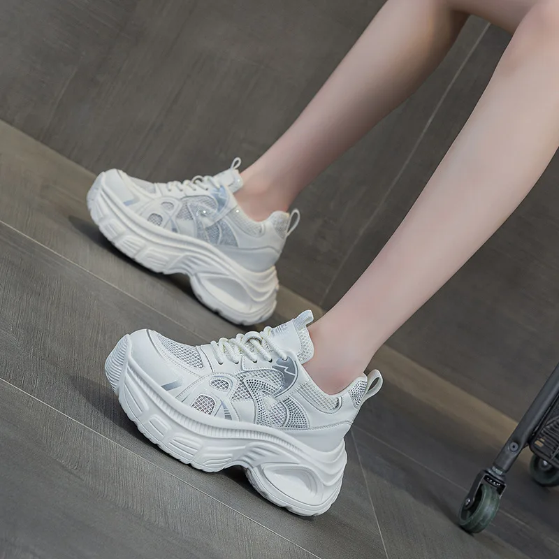2026 Spring and Summer New Transparent Mesh Thick Soled 9CM Water Diamond Casual Fashion Women's Shoes