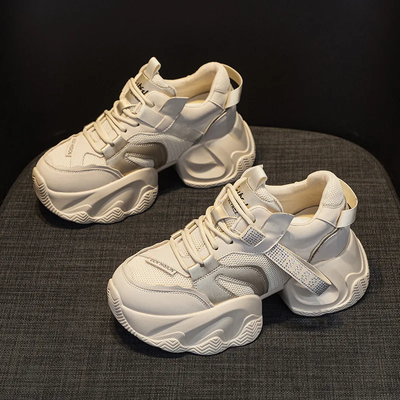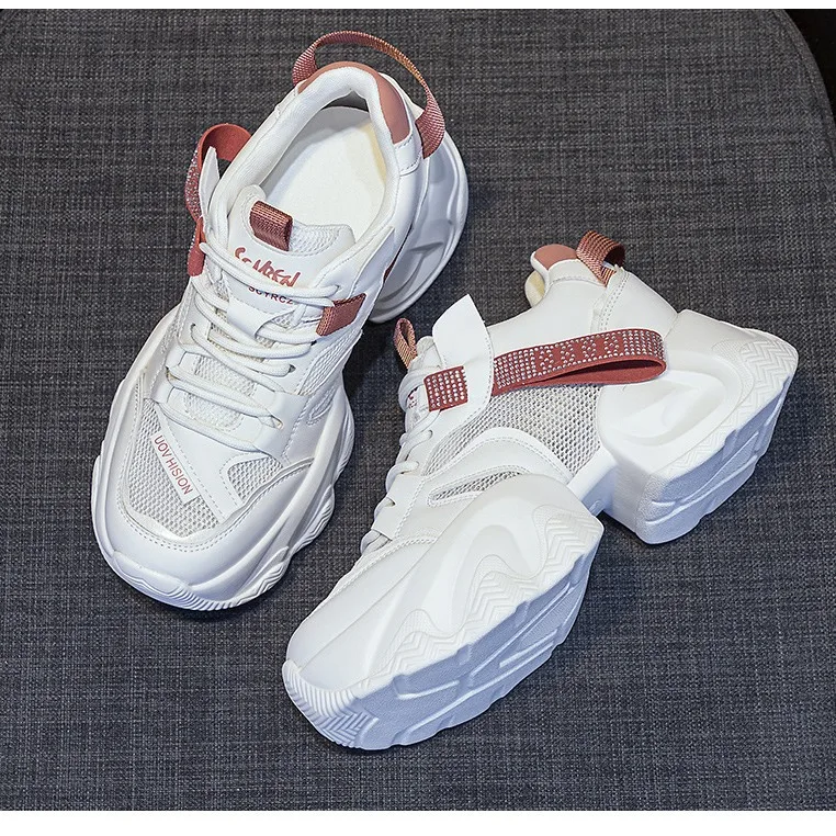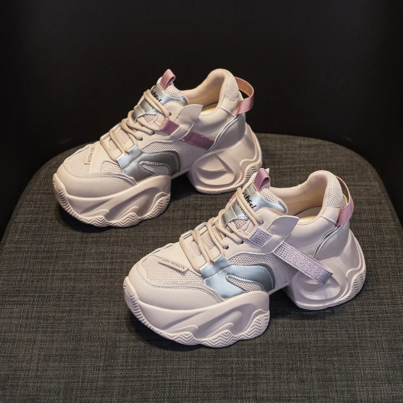 Thick sole with an increased height of 8CM, breathable women's shoes for spring and summer sports and leisure, mesh shoes