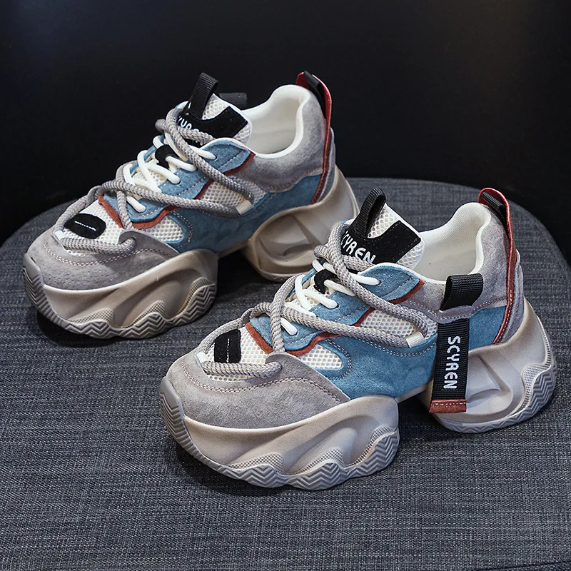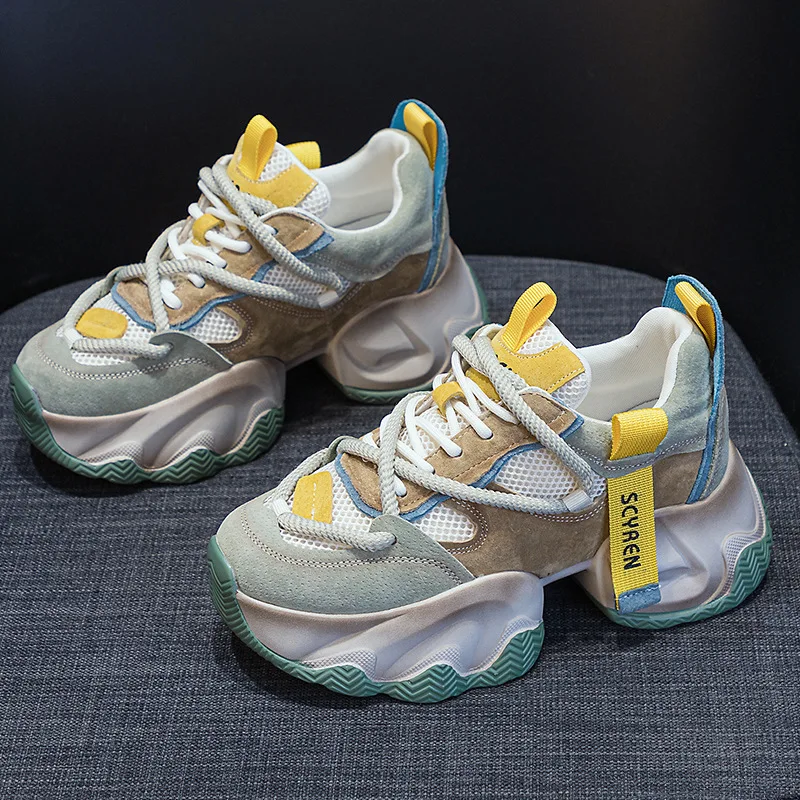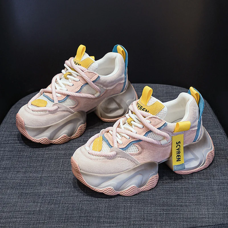 High Quality Thick Sole with a Height Increase of 8CM for Women, Breathable Spring and Summer Sports and Leisure Mesh Shoes
