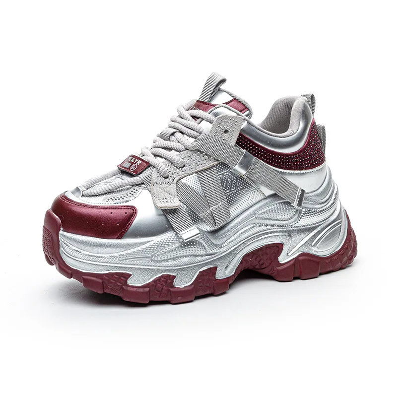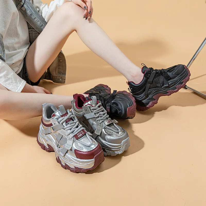 High Quality Thick Sole with a Height Increase of 8CM, Casual and Versatile Color Blocked Rhinestone Sports Women's Shoes