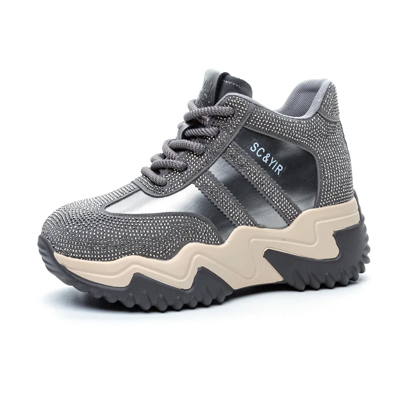 High Quality Thick Sole with an Increased Height of 7CM, Casual and Versatile Color Blocked Rhinestone Sports Women's Shoes