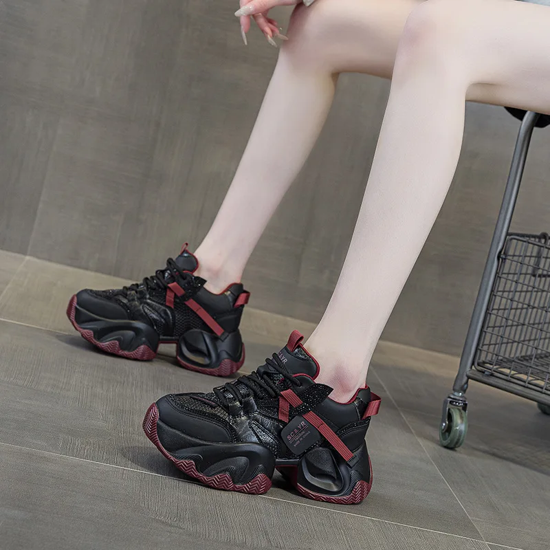 High quality thick sole height increasing 8CM women's shoes for spring and summer, new rhinestone sports and leisure shoes