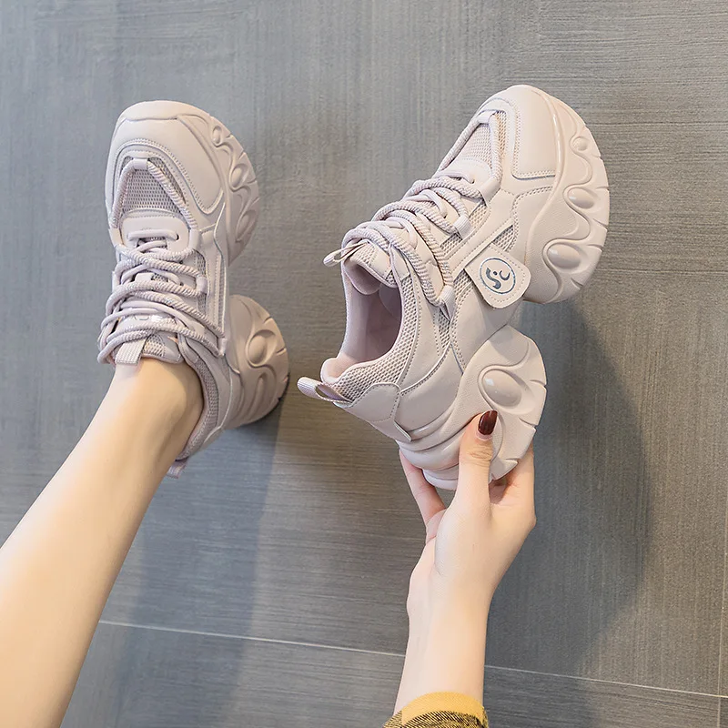 High Quality Thick Soled 7CM Women's Shoes, Spring and Summer New Single Mesh Breathable Lace up Women's Shoes