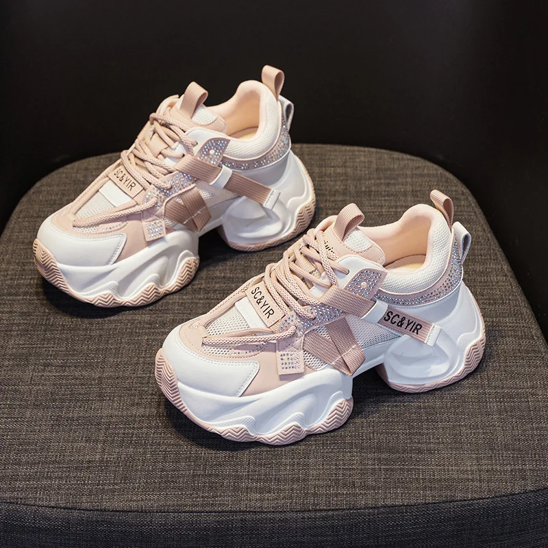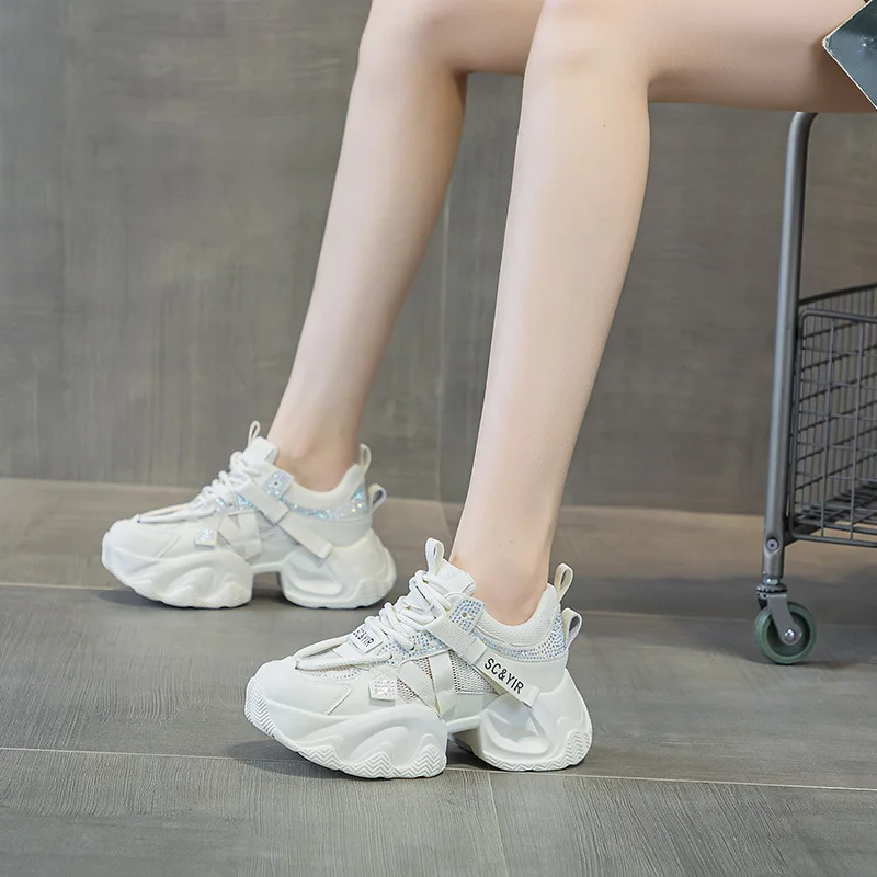 Thick Soled Women's Shoes with a Height Increase of 8CM, 2026 Spring and Summer New Rhinestone Casual Sports Shoes
