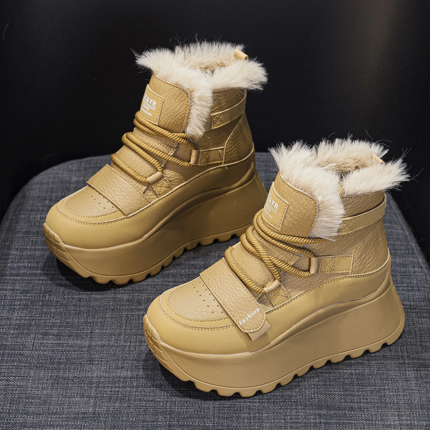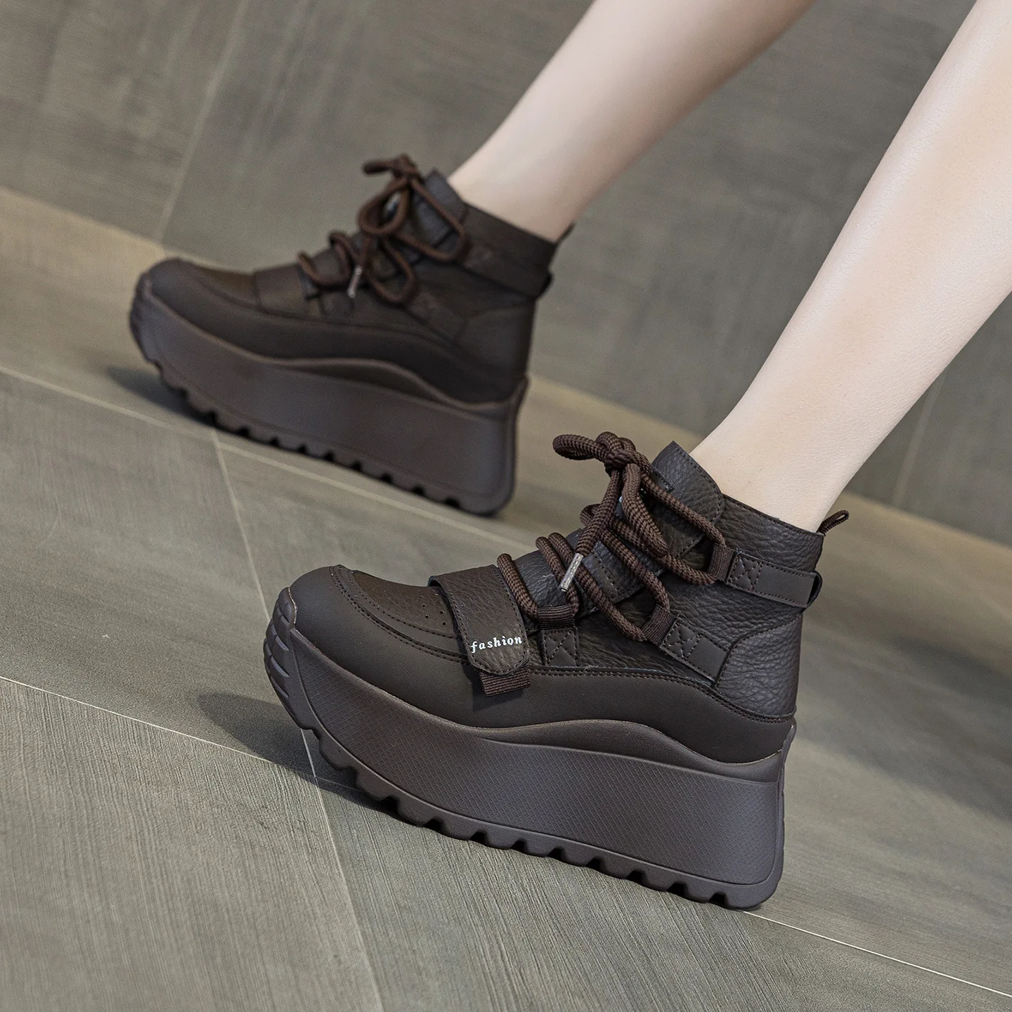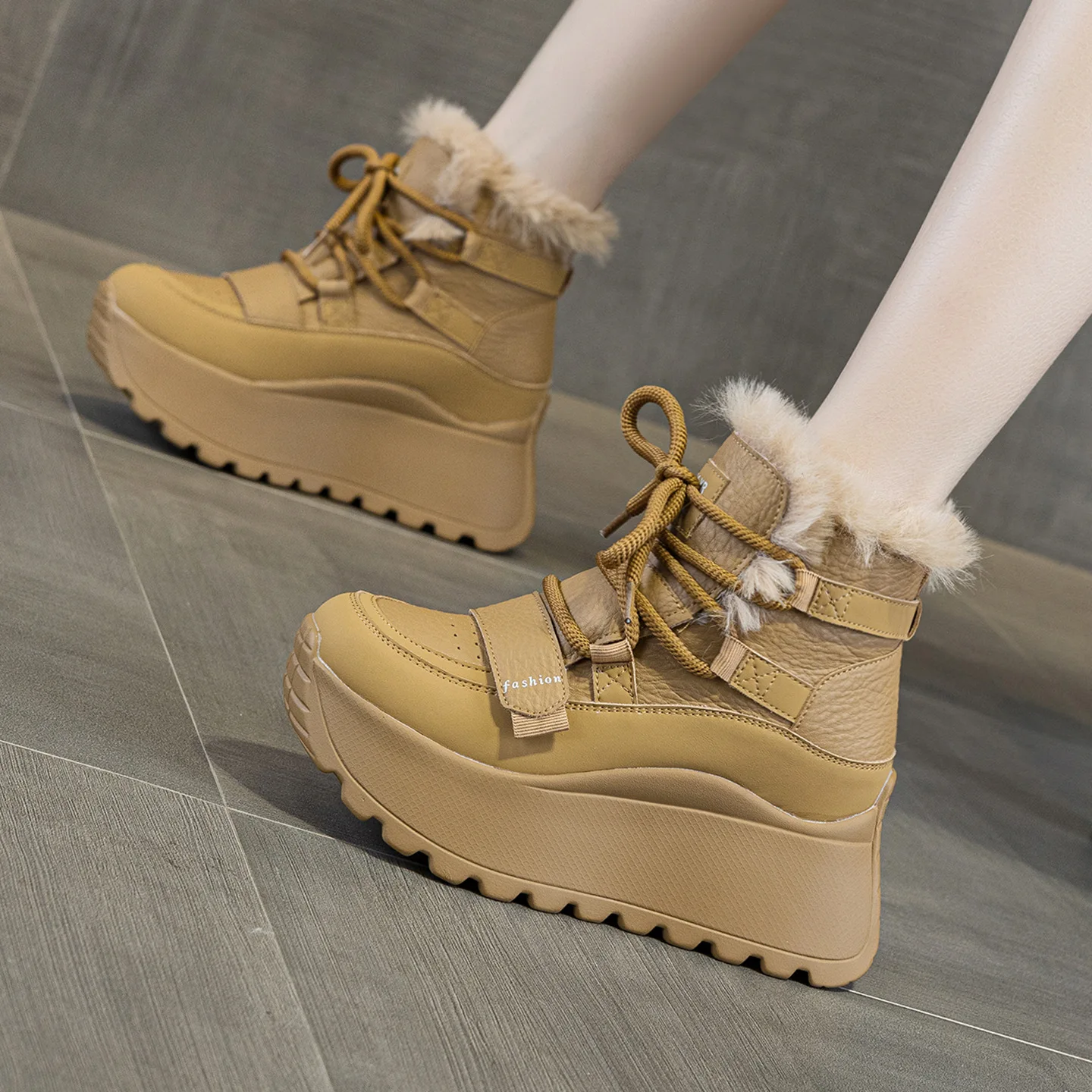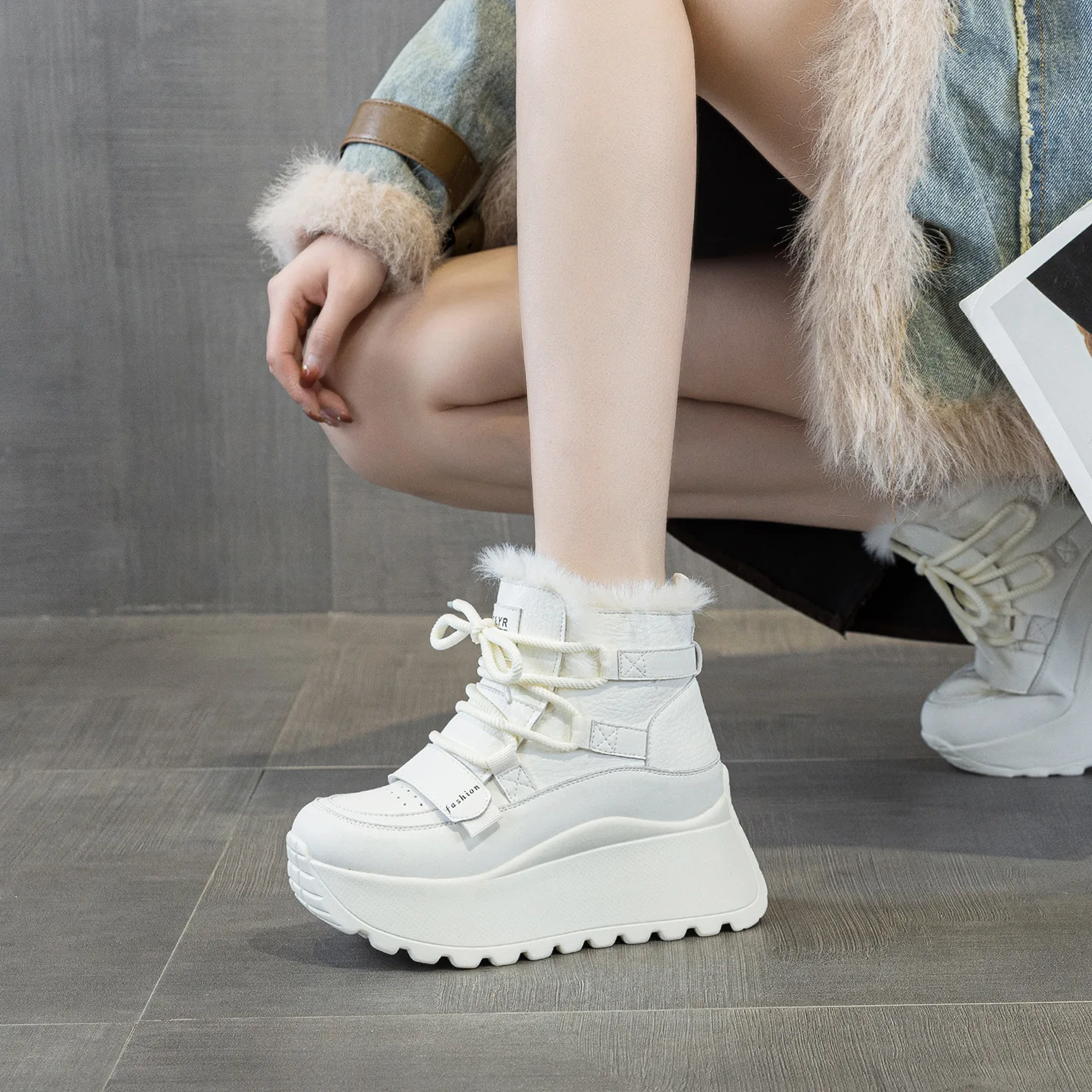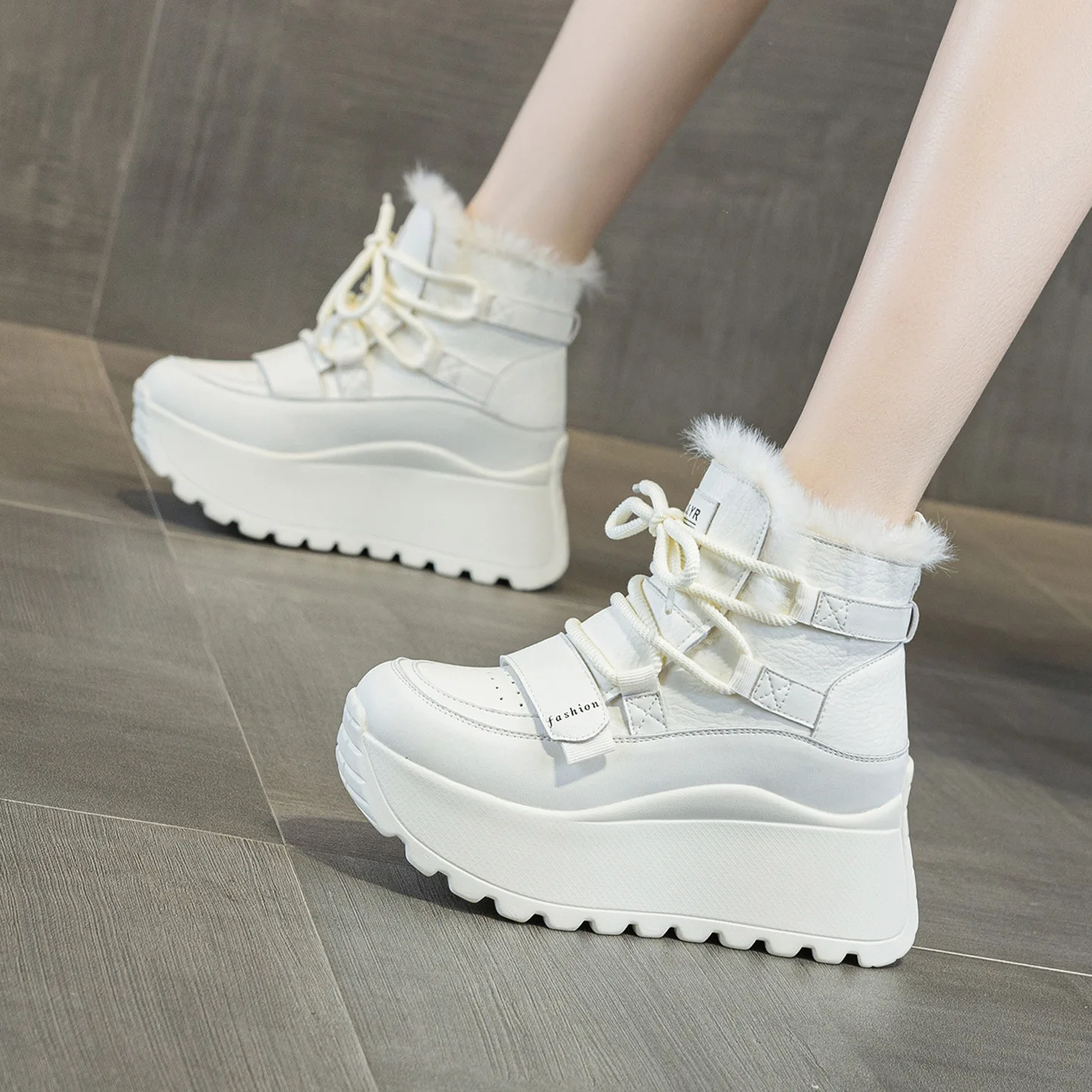 Thick Soled, Height Increasing 8CM Women's Shoes, 2026 Autumn and Winter with Plush High Top Casual and Fashionable Sports Shoes