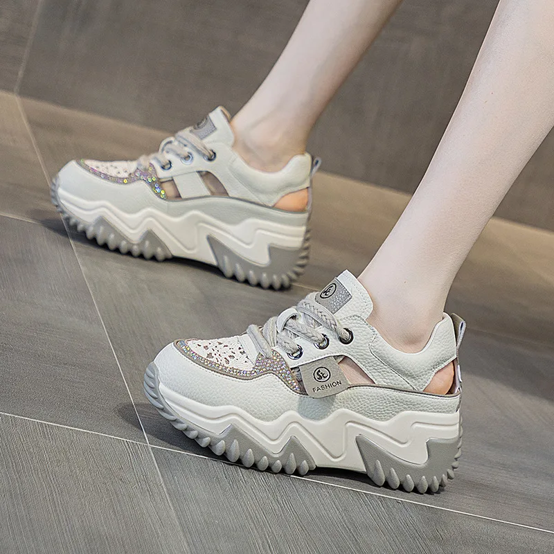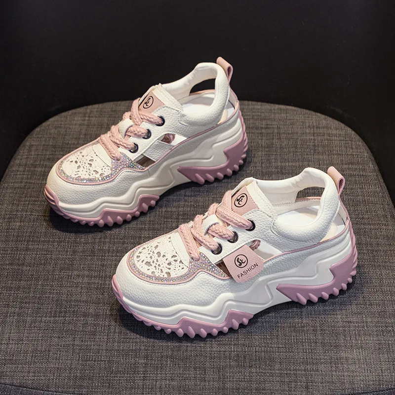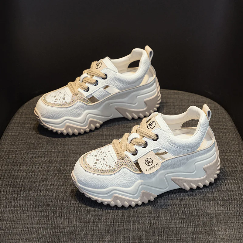 Casual Sandals for Spring Summer Breathable Lace-Up Shoes with Height-Increasing Hollow-out Design PU Insole