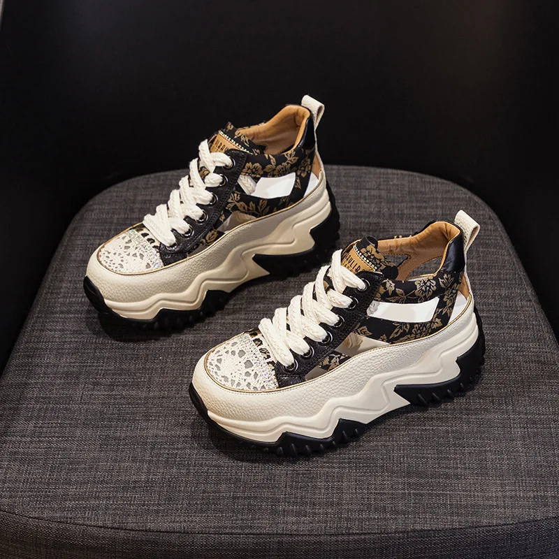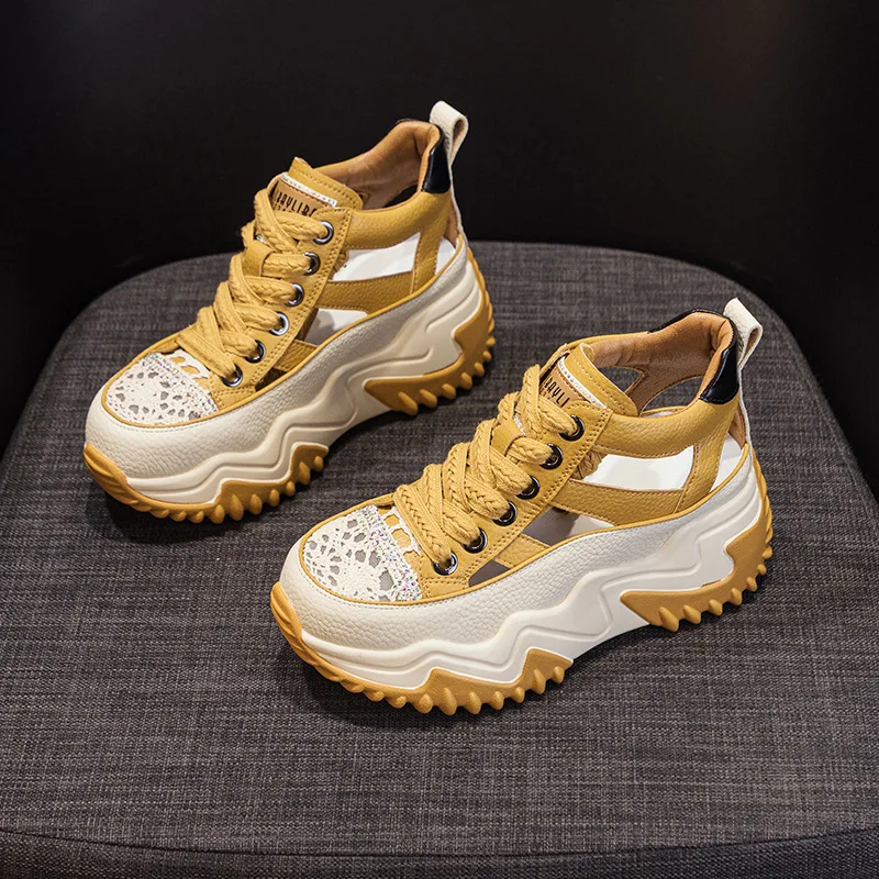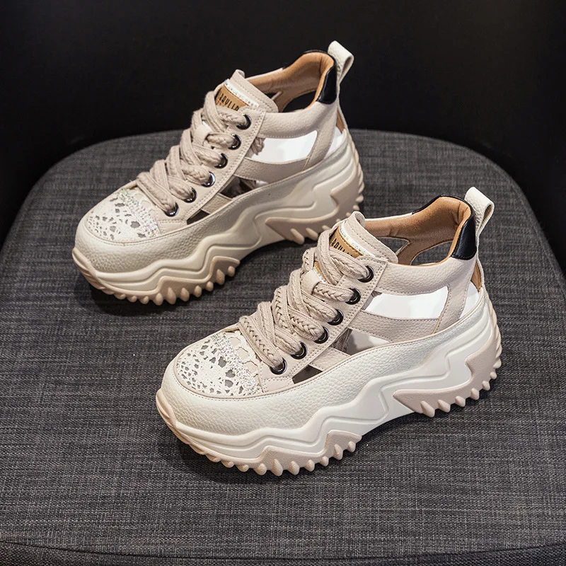 2026 Spring New Thick Bottom with 8cm Height Increase for Women's Shoes, Casual, Sports, Versatile, Fashion Trendgenuine Leather