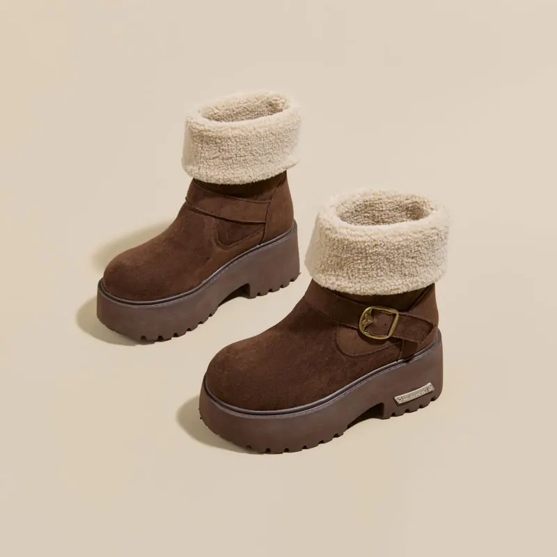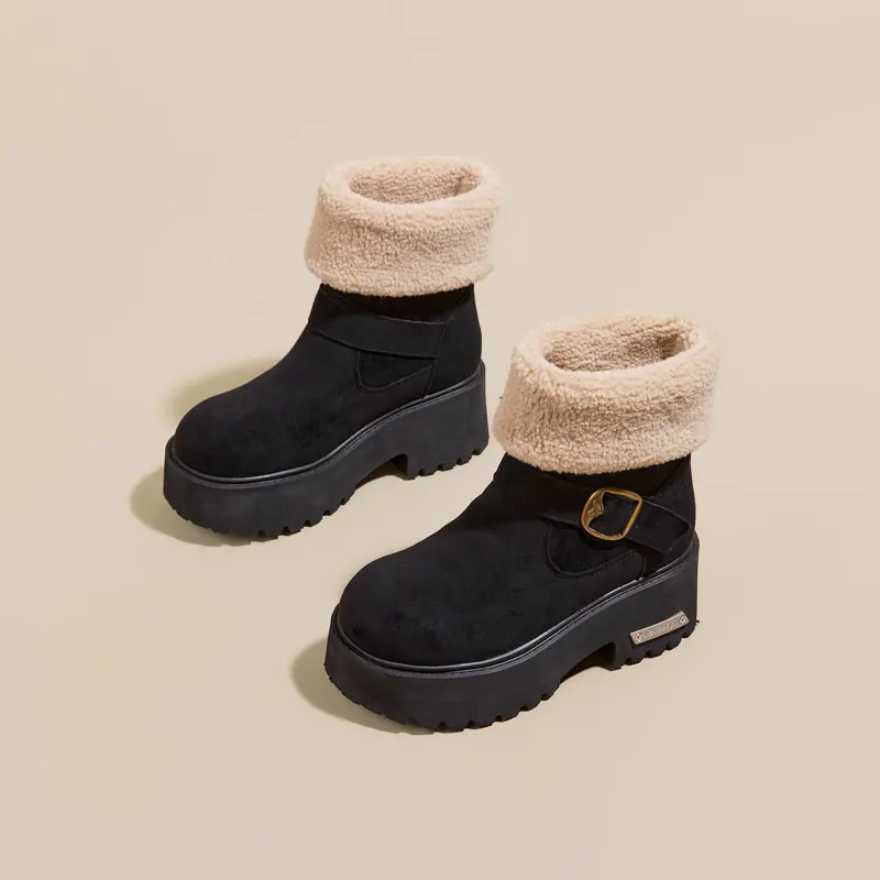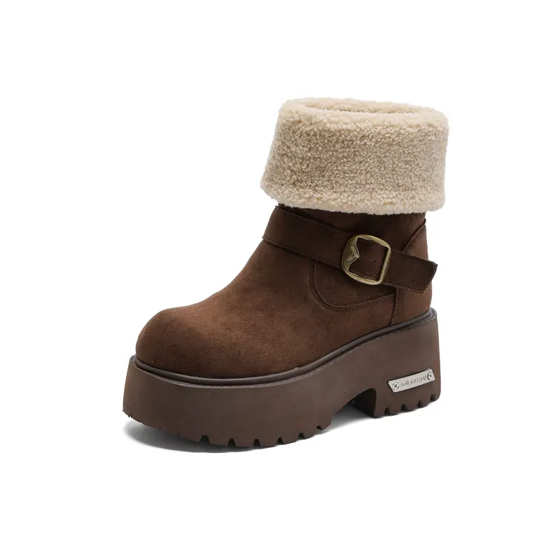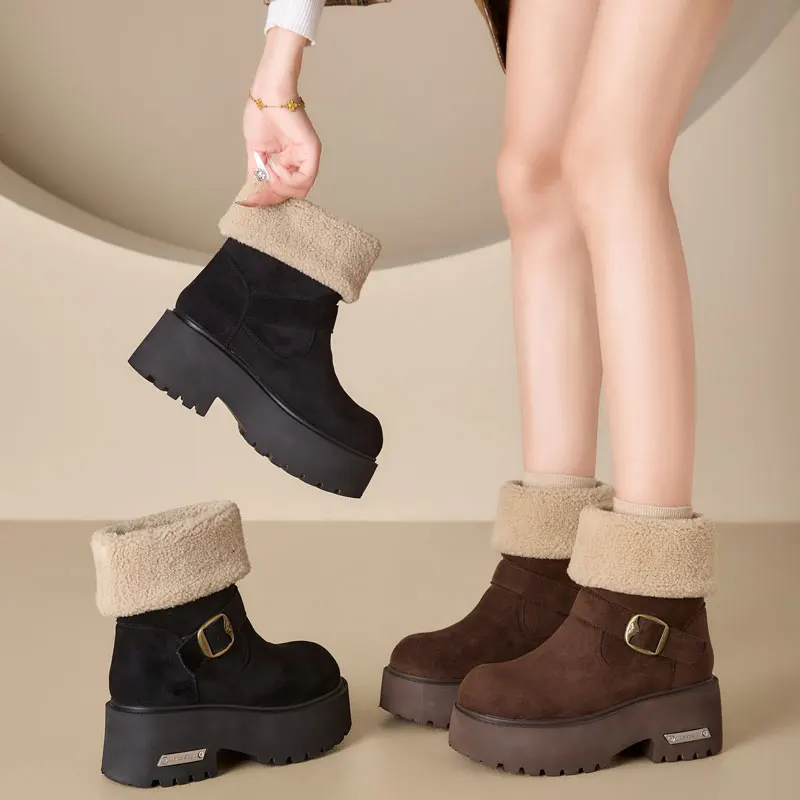 Thick Soled 8CM Women's Snow Boots with Added Fleece for Winter 2026, slip Resistant, Casual, Warm Cotton Shoes