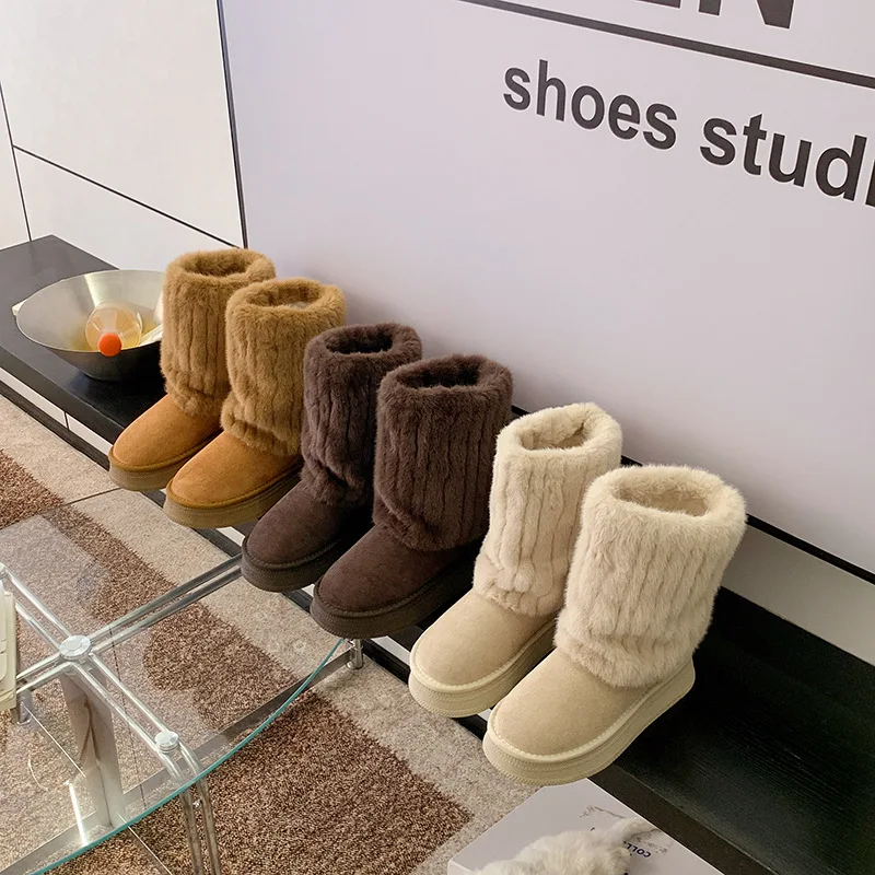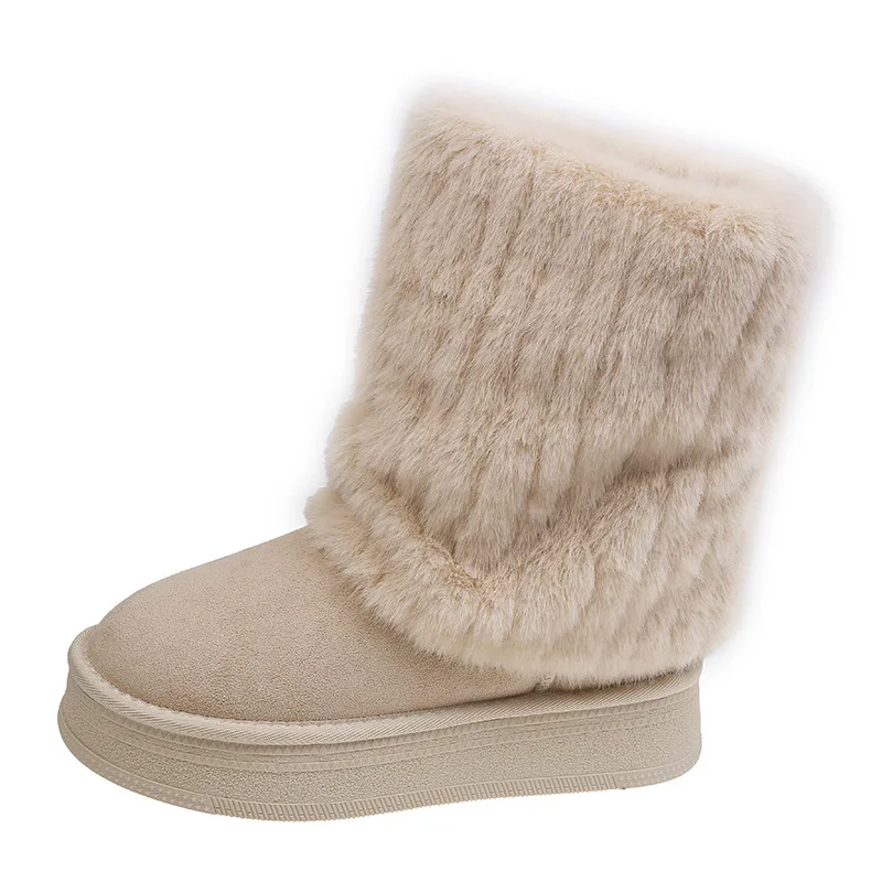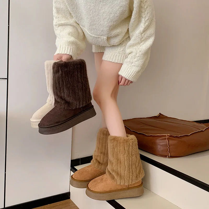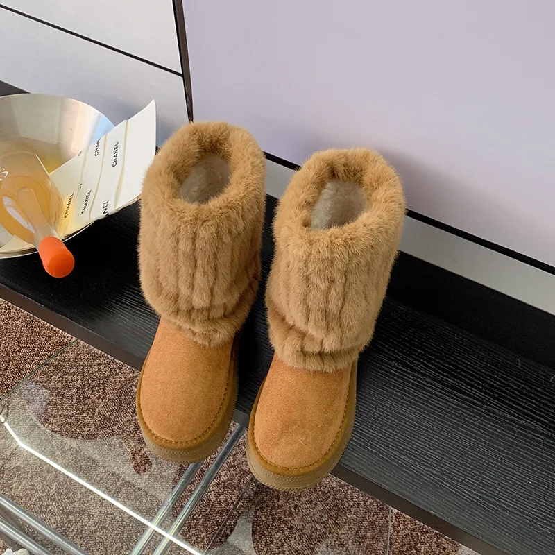 Women's Snow Boots 6cm Height Increase with Plush Insulation, Winter Belt Buckle, Pants, Short Boots, Midsole, Cotton Shoes