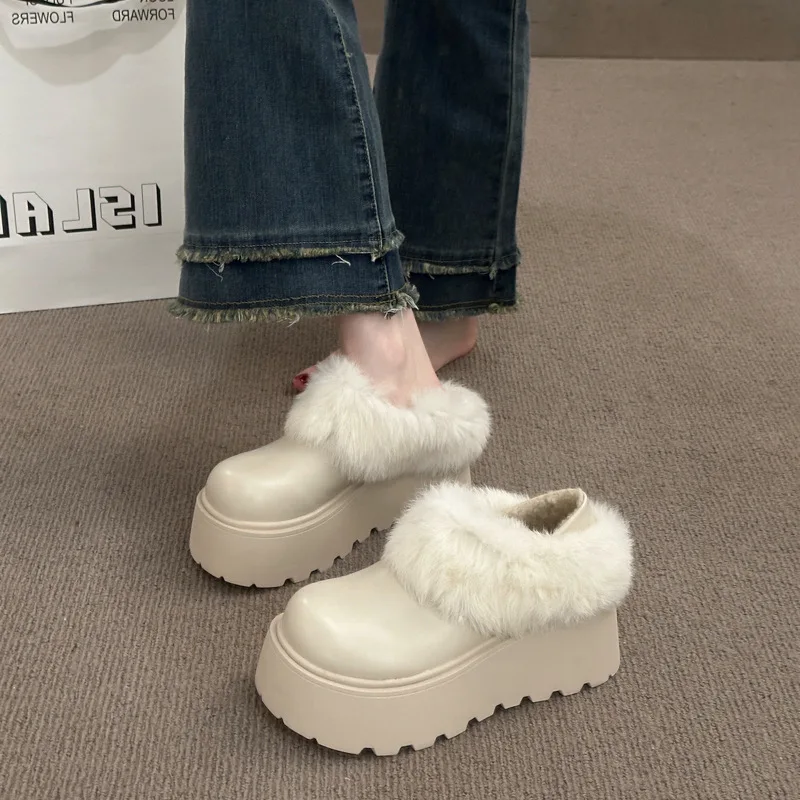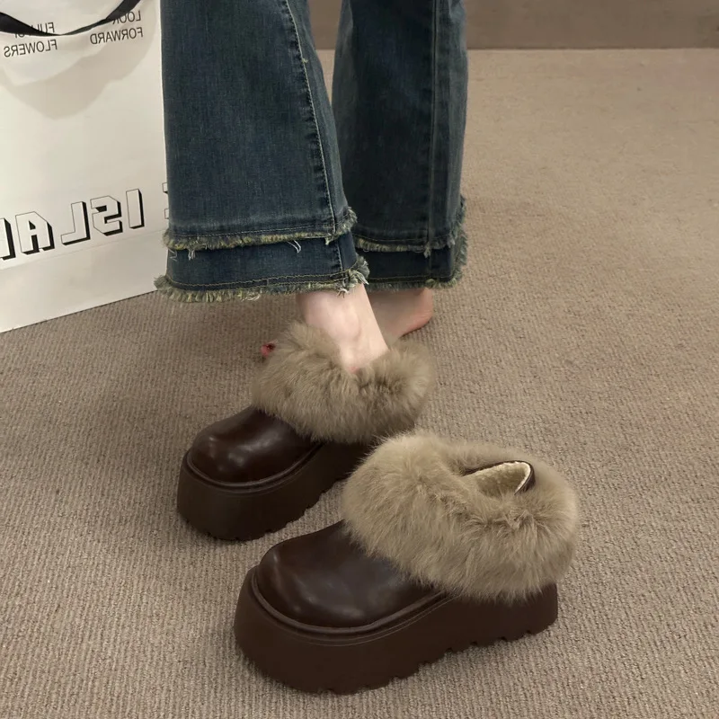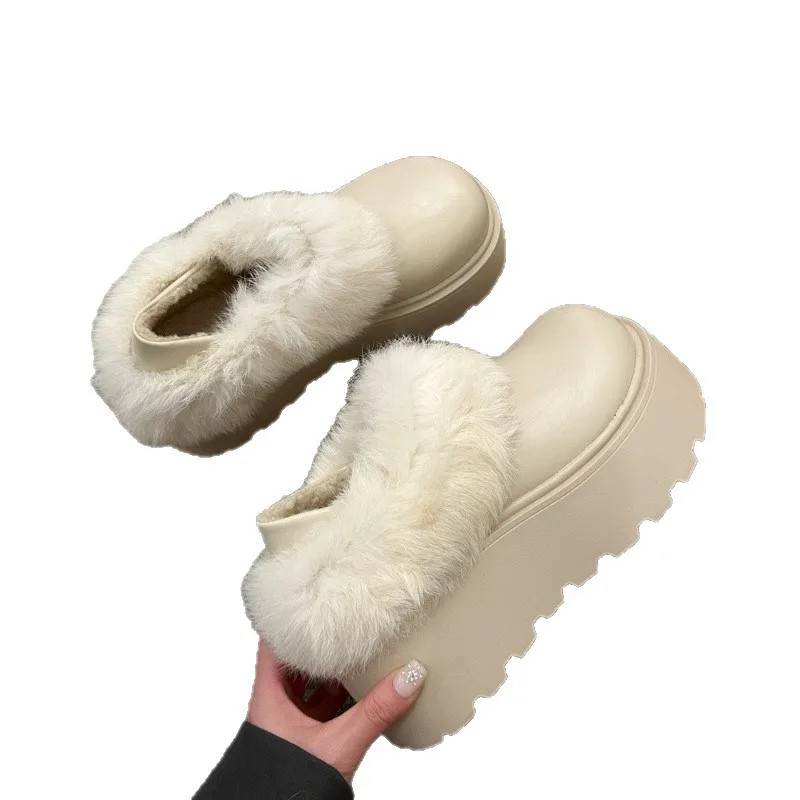 Wholesale winter fashion design warm boots customized women's snow boots thick soled height increasing hairy shoes