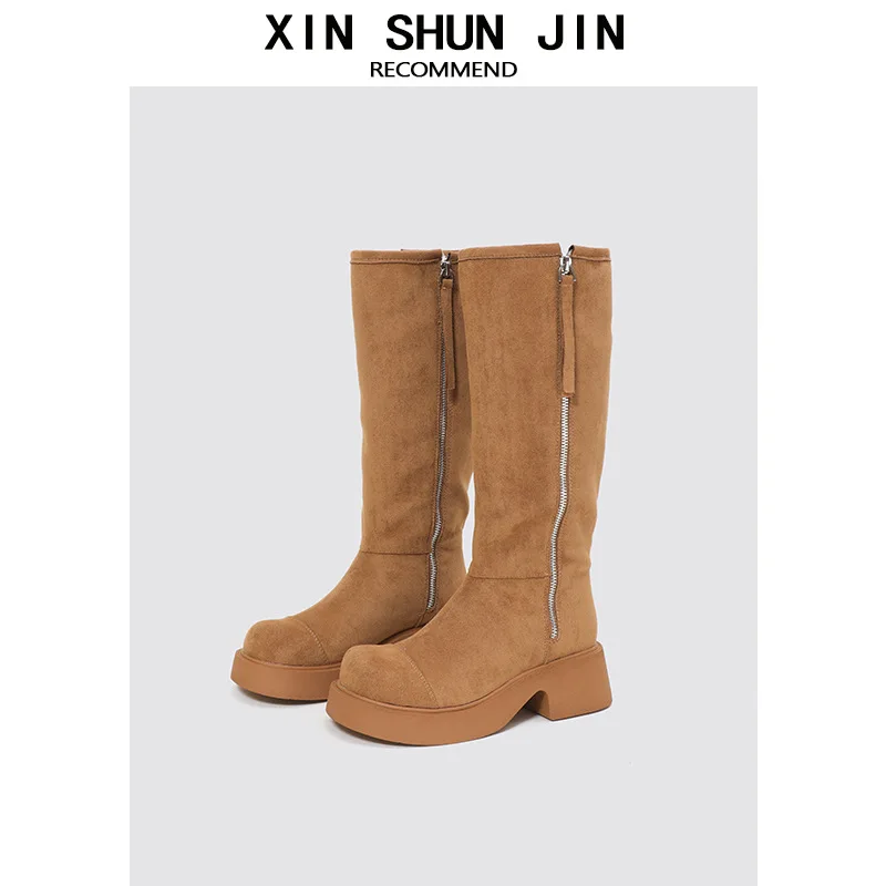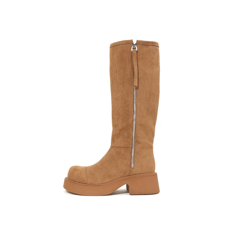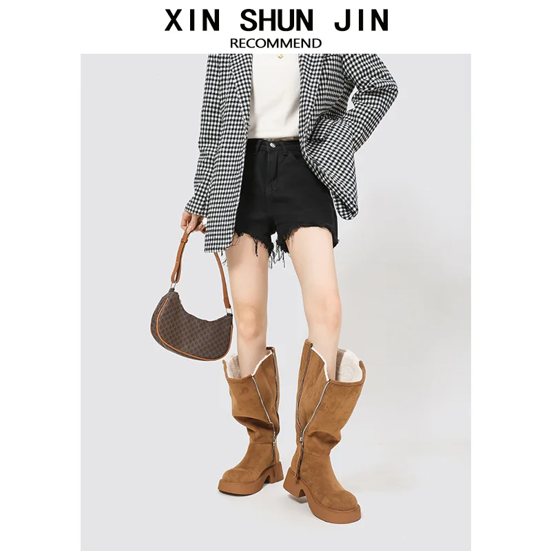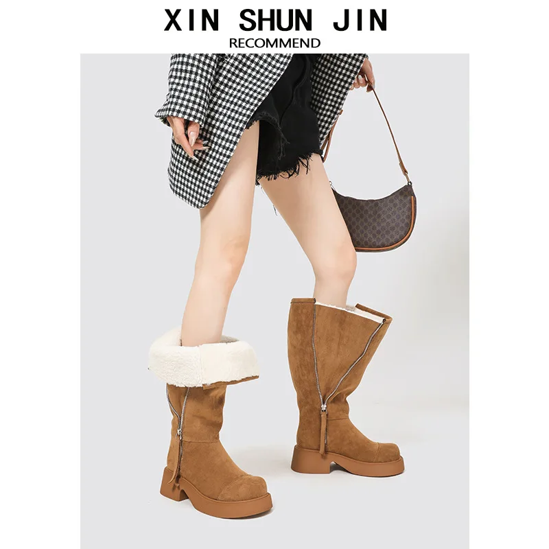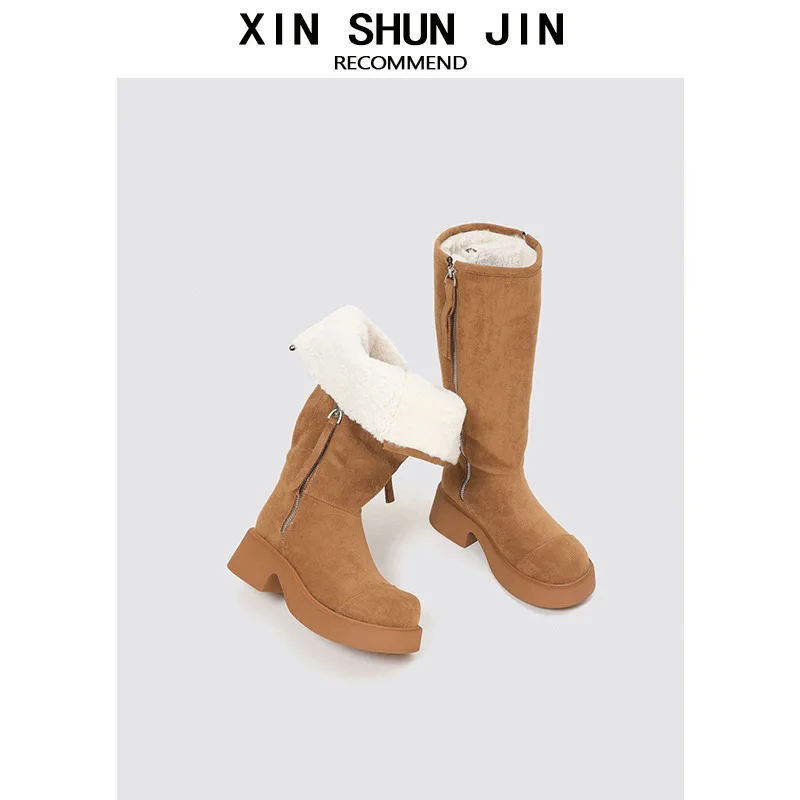 Wholesale High-quality Large Walled Women's Snow Boots, Autumn and Winter New Warm Stacking Boots, Customized Zipper Design