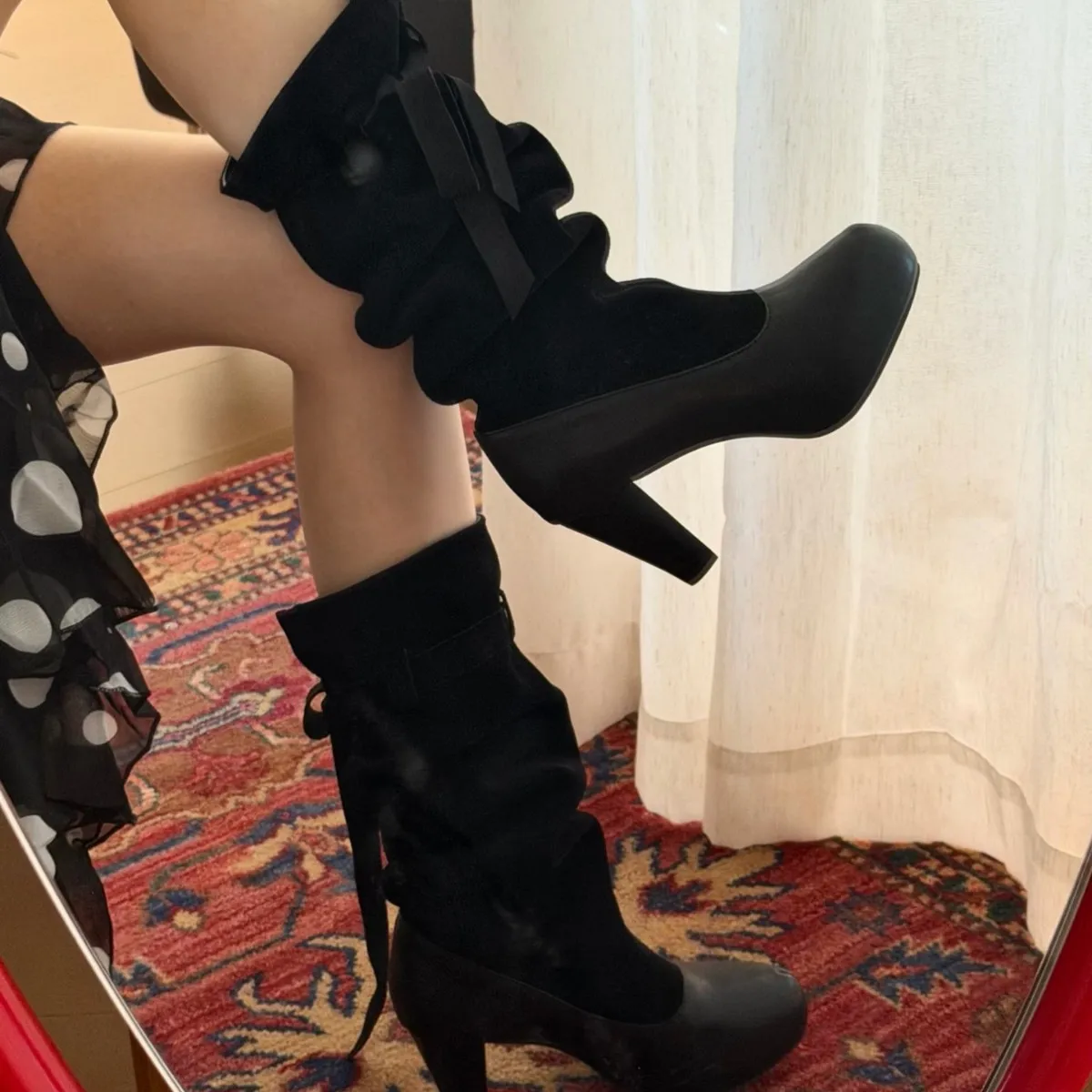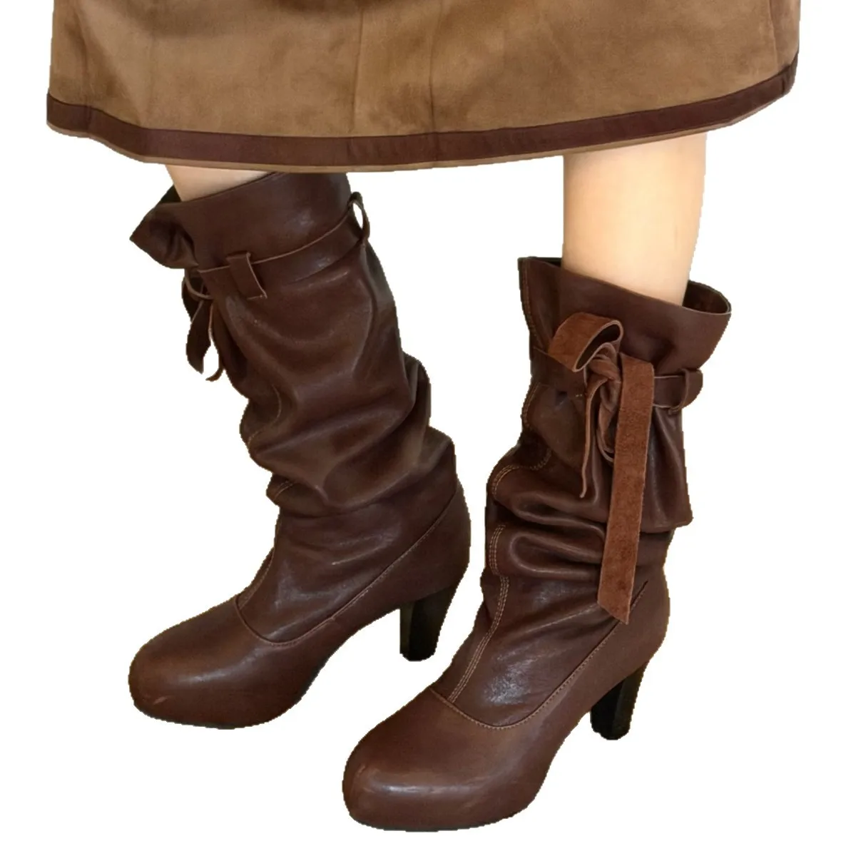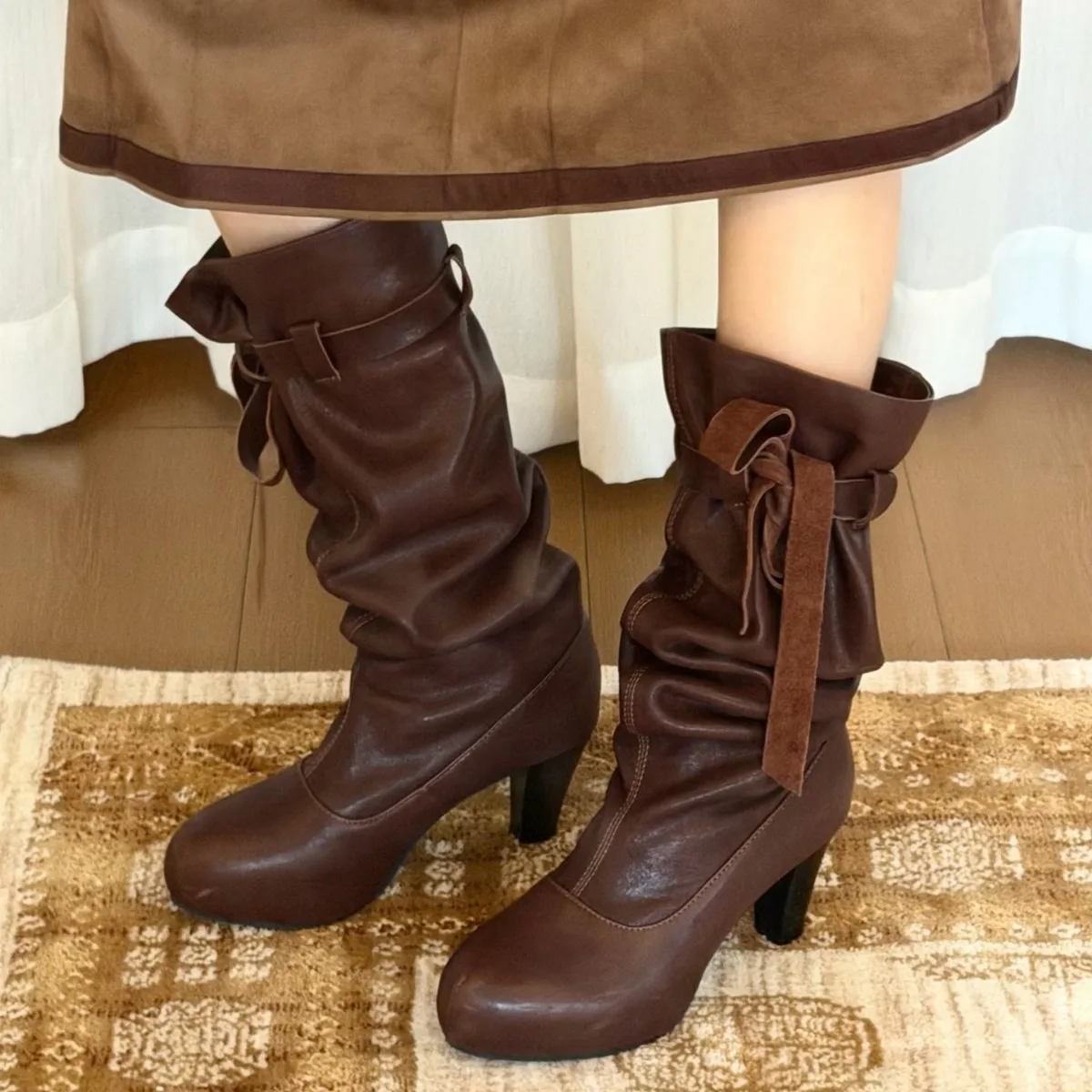 Wholesale Pleated Bow, Midsole Boots, Stacked Boots, Retro Style Straps, Stacked Boots, Waterproof Platform, High-heeled Boots