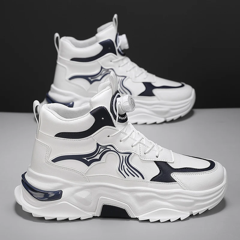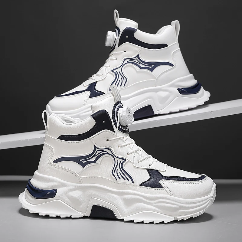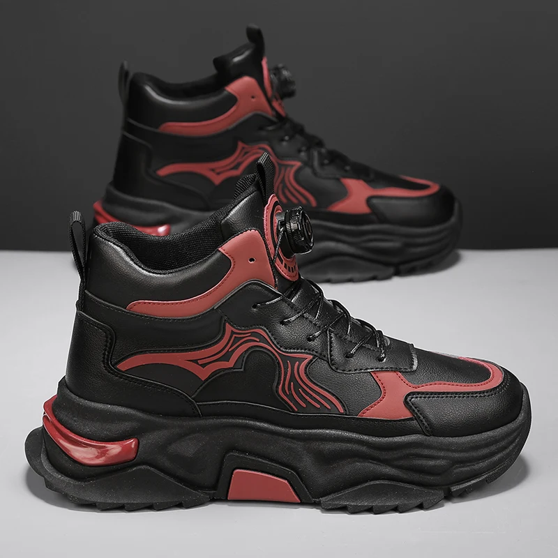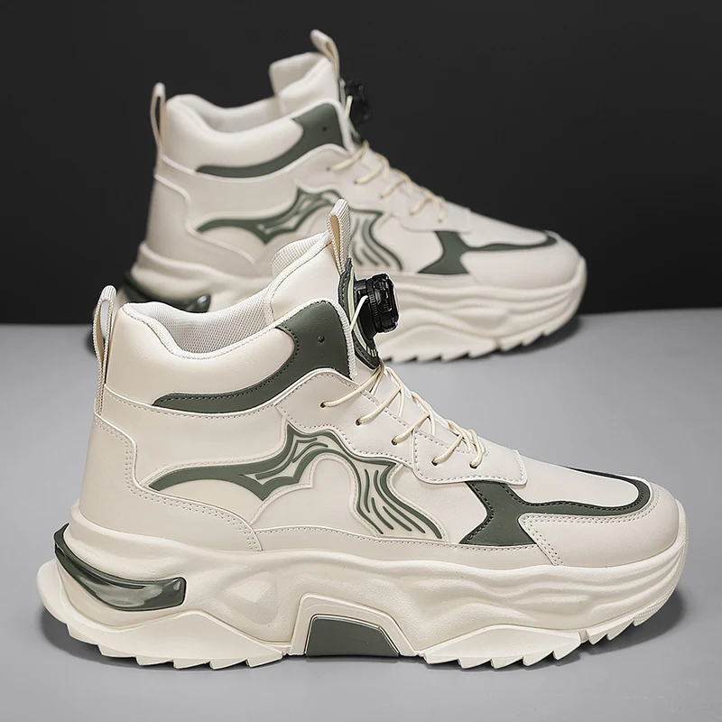 Men's Fashionable High-heeled Thick Sports Shoes, Breathable, Lightweight Lace-up, Mechanical Style, and Odor-proof Casual Shoes