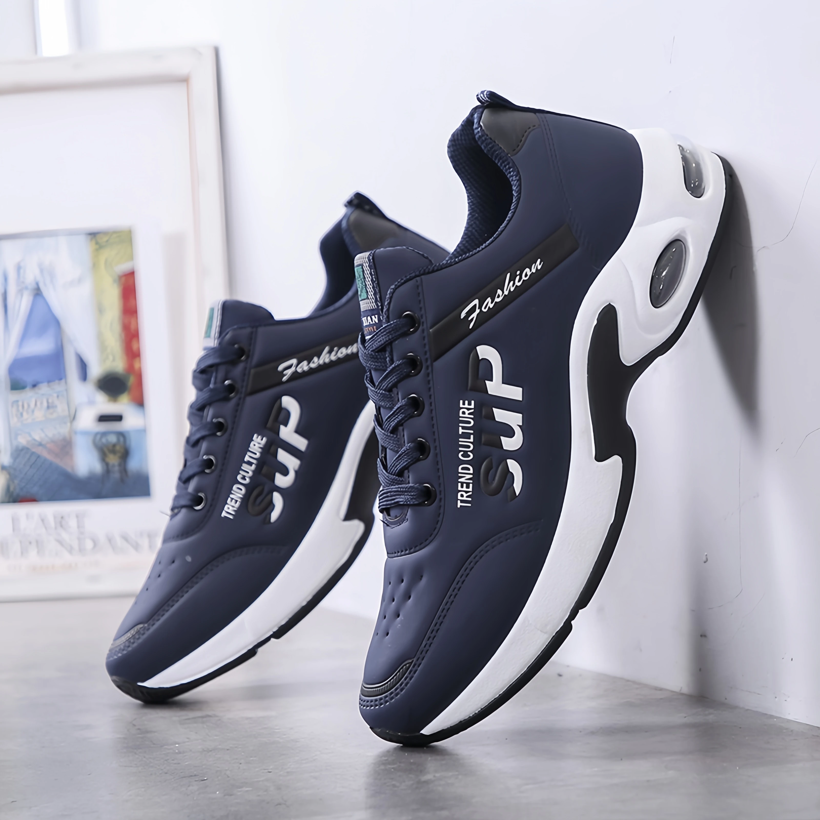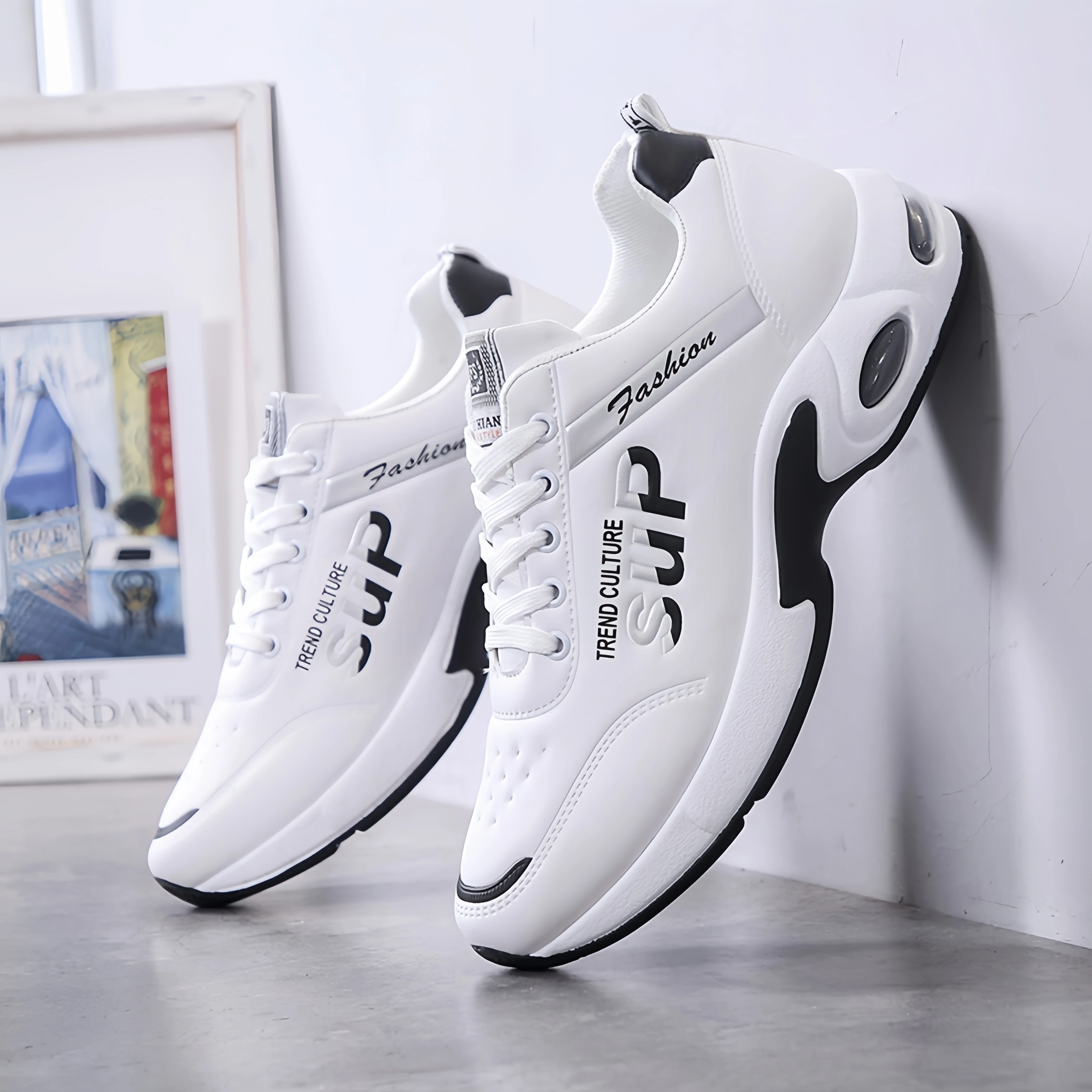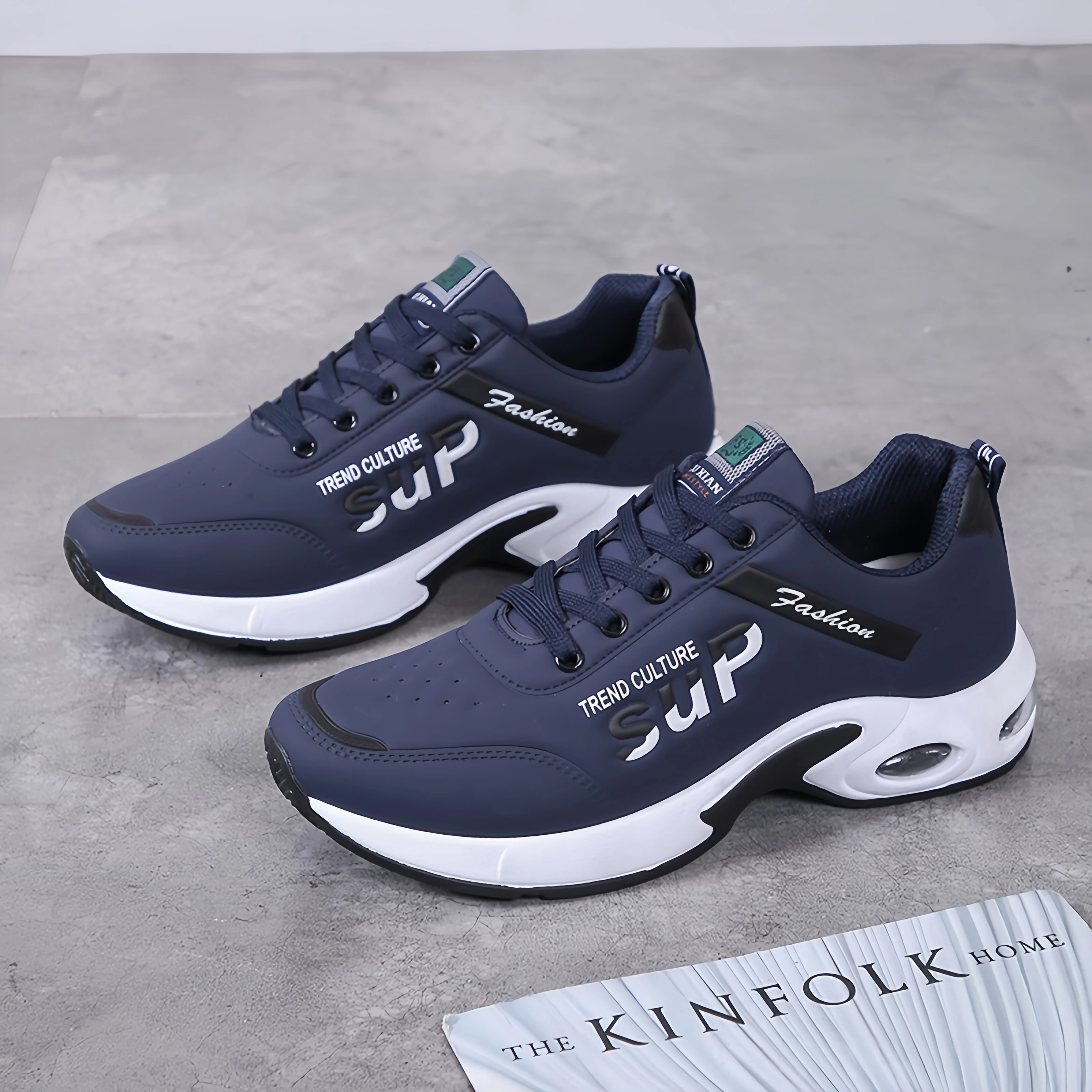 Men's Fashion Trend Lace-Up Sports Shoes Cross-Border Leather Breathable Cushioned Lightweight Soft Bottom Casual Mesh All