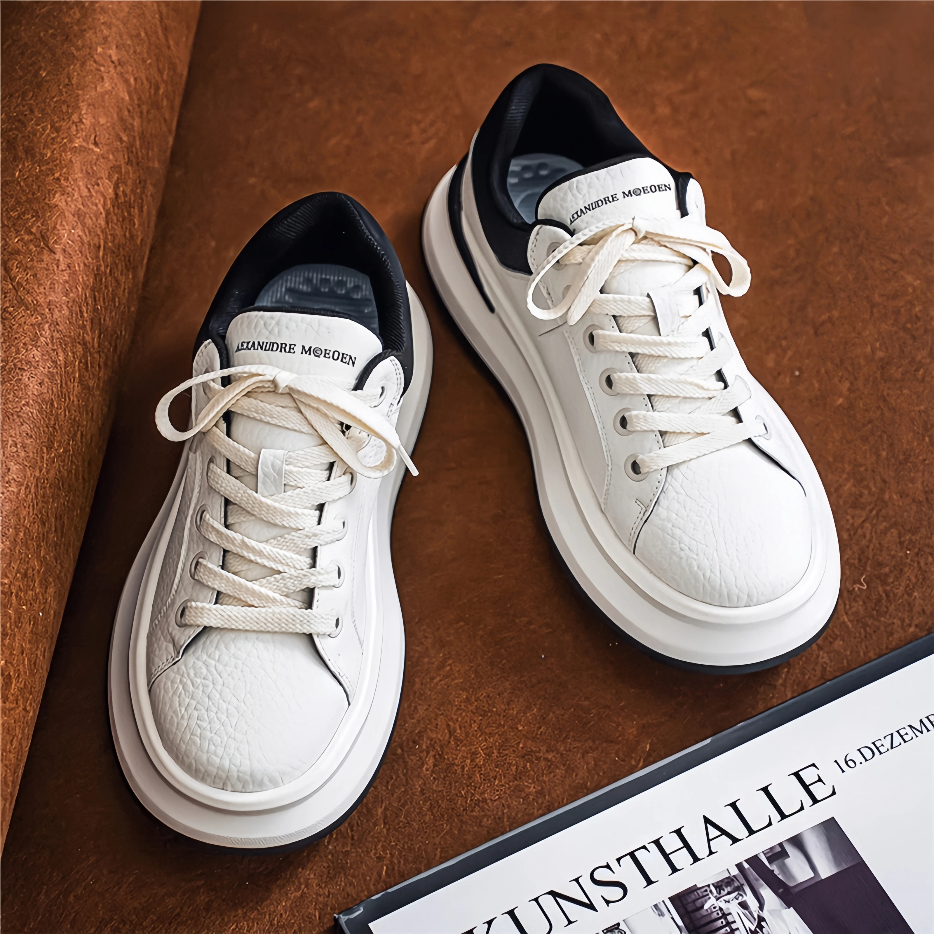 Spring Autumn Thick-insole Breathable Casual White Shoes Walking Style Sports Running Men's Skateboard Shoes