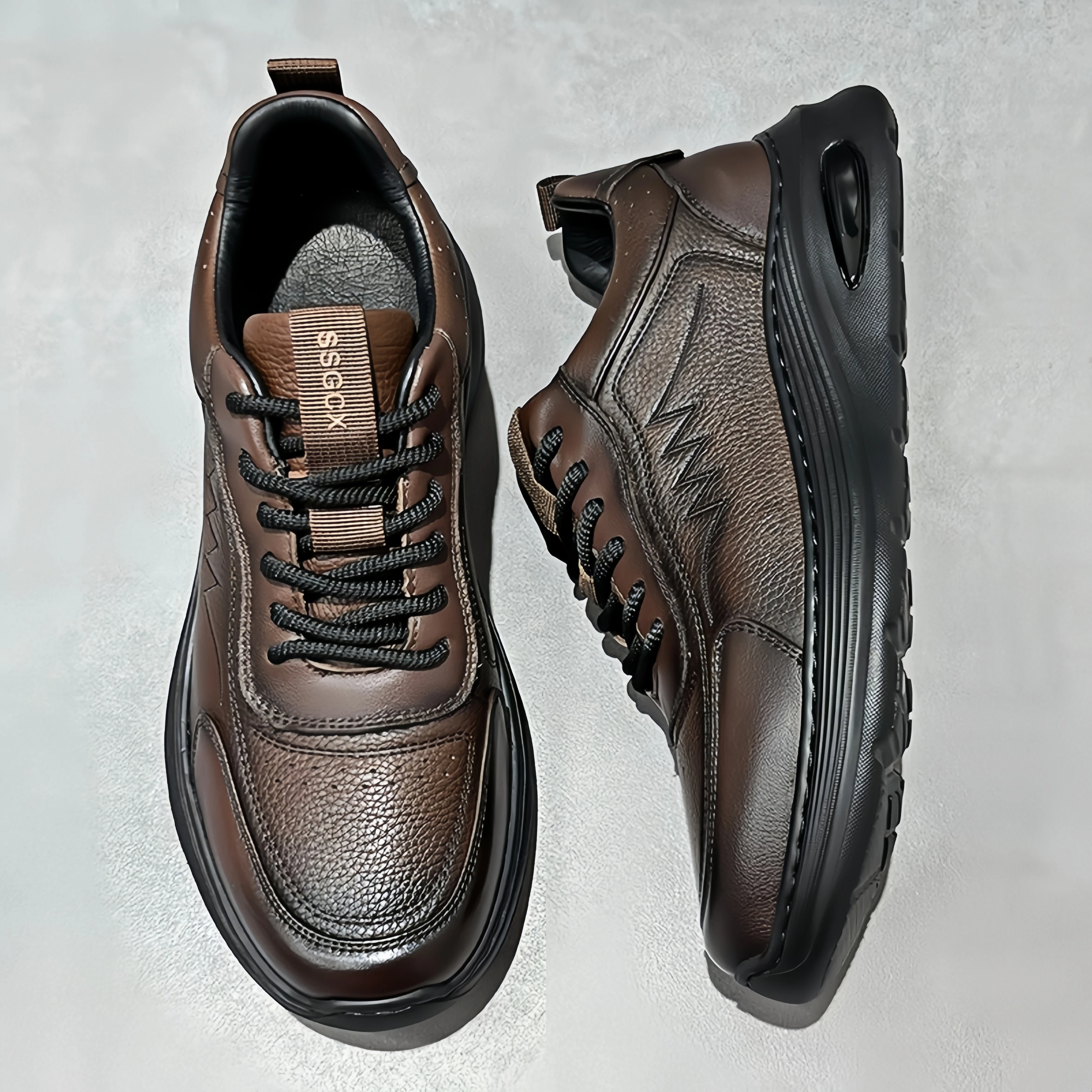 Sports Shoes Texture Leather Wave Stitching air Cushion Thick Sole Retro Casual Style